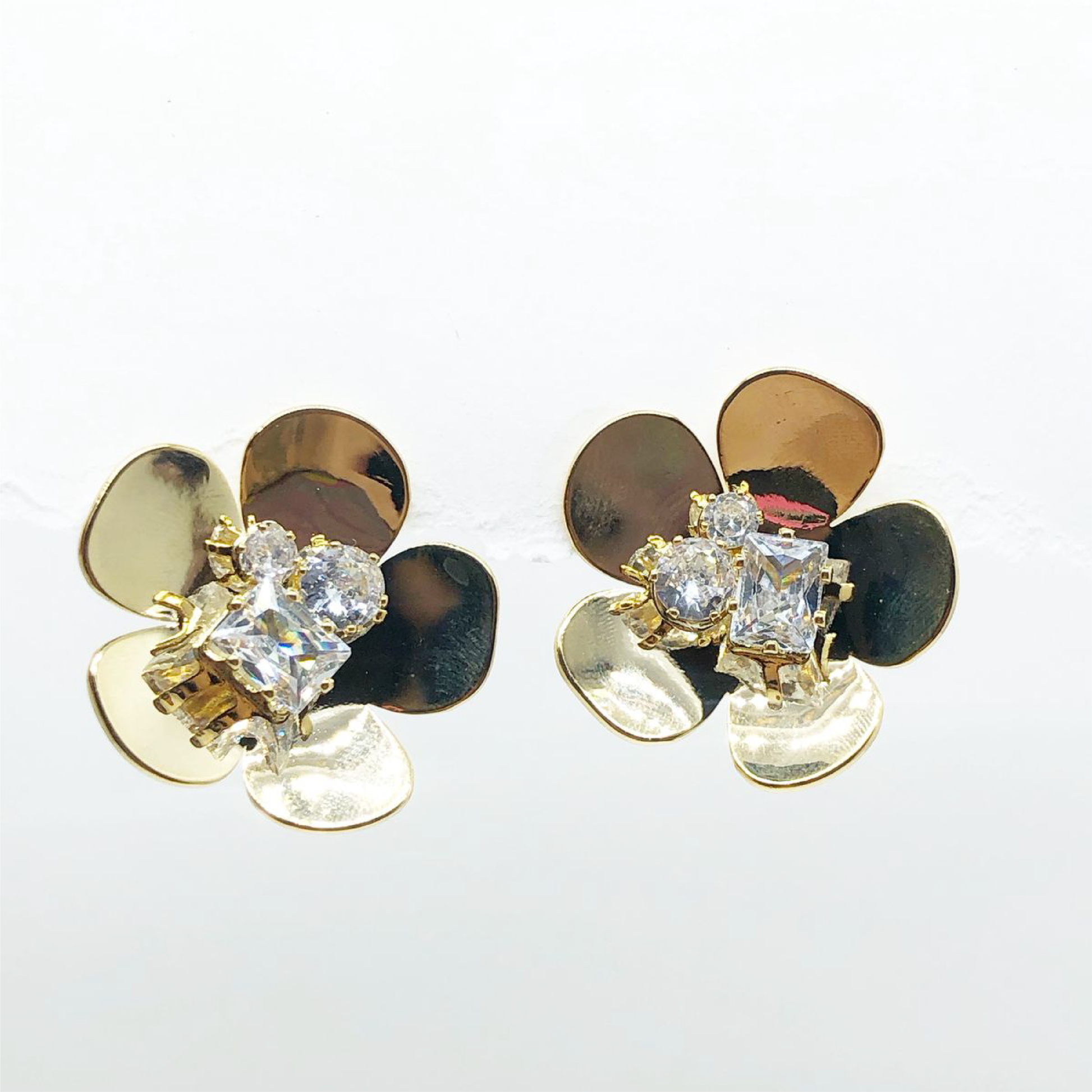 TOPOS EN RODIO CON SILUETA FLOR CON CIRCONES.
