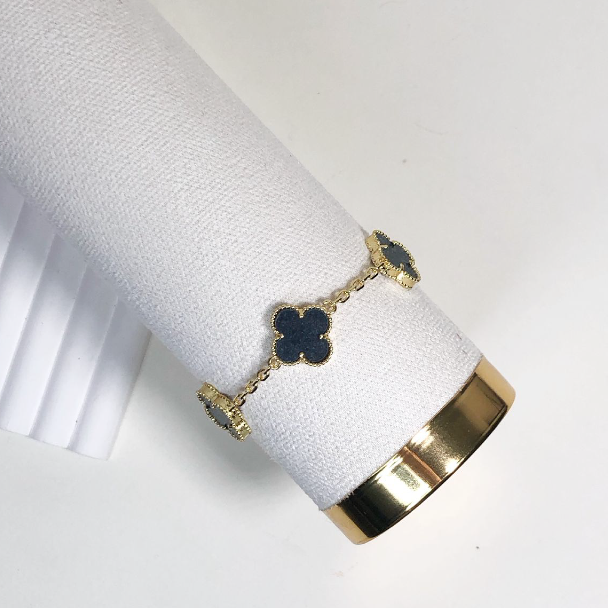 PULSERA TREBOLDORADA Y NEGRO MATTE, 16 CM APROX, RODIO.