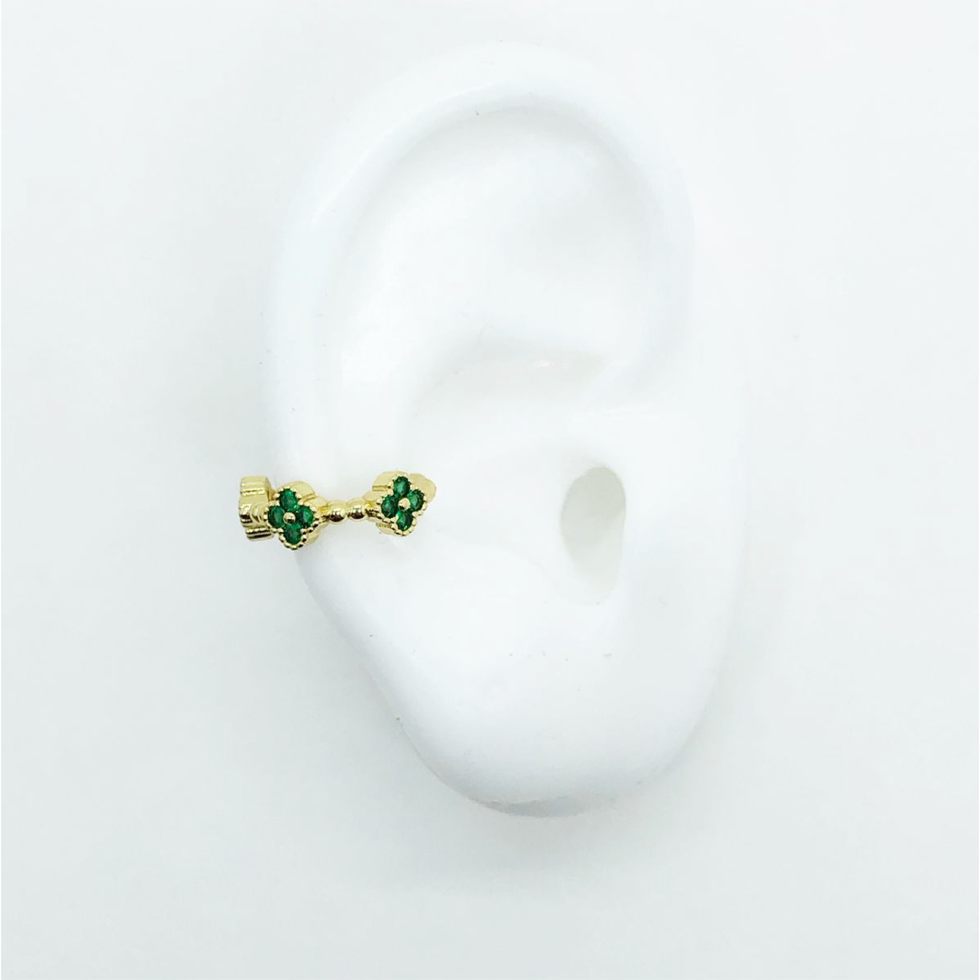 EARCUFF TREBOL VERDE, GRADUABLE, RODIO