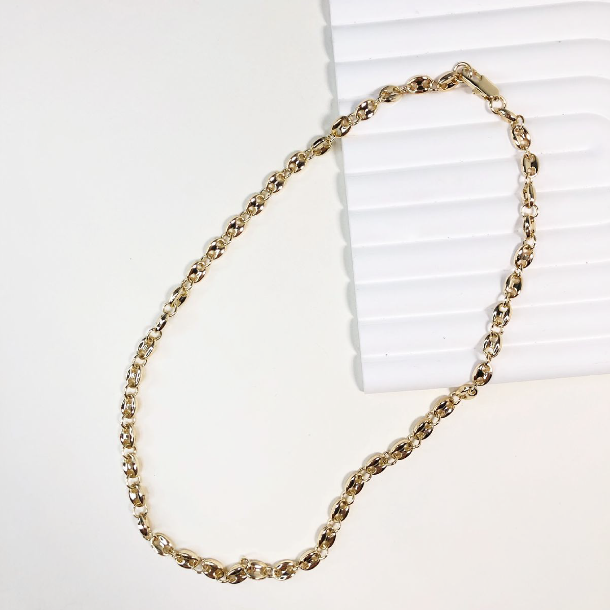 CADENA DORADA TEJIDO GUCCI MEDIANA, 45 CM APROX, RODIO