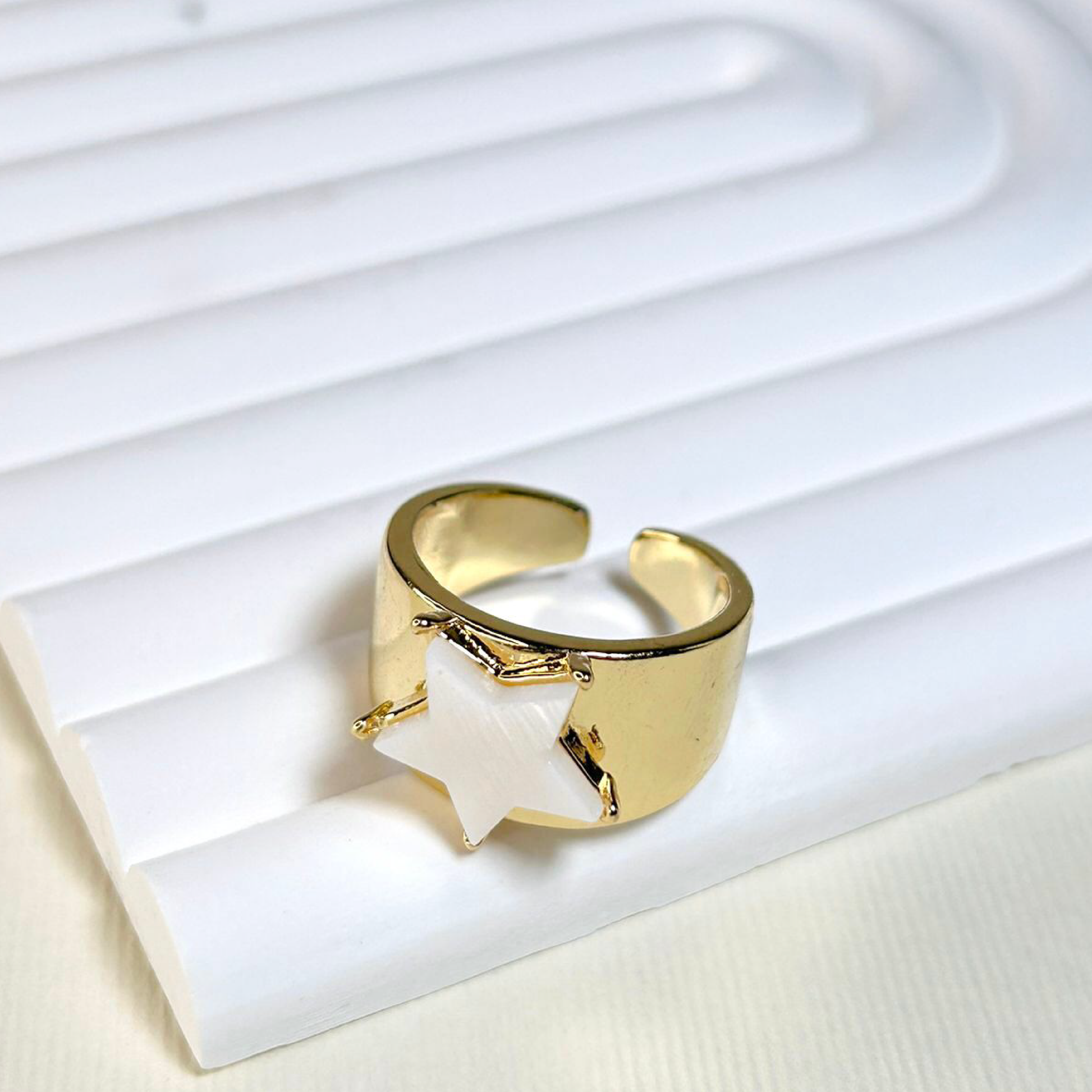 ANILLO ESTRELLA DORADO, 3 CM APROX, GRADUABLE, RODIO