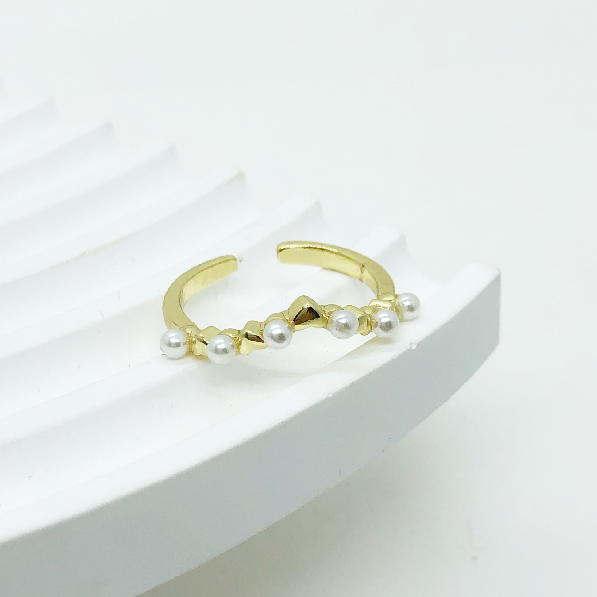 ANILLO CON PERLAS Y CORAZONES, GRADUABLE, RODIO