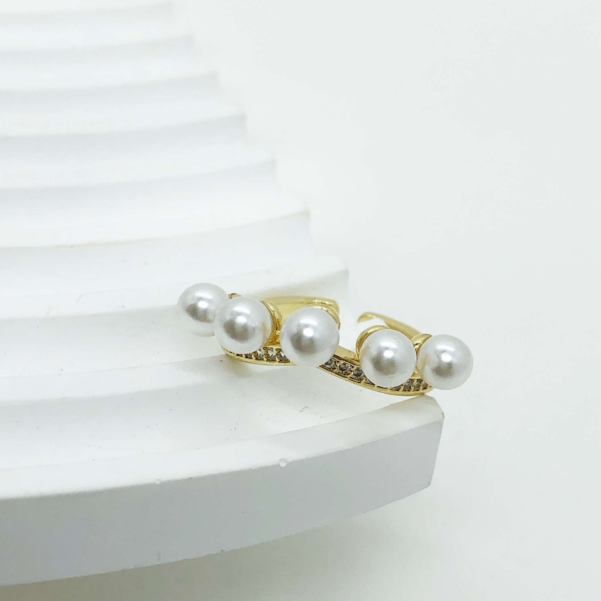 ANILLO DORADO CON PERLAS Y PEDRERIA, GRADUABLE, RODIO