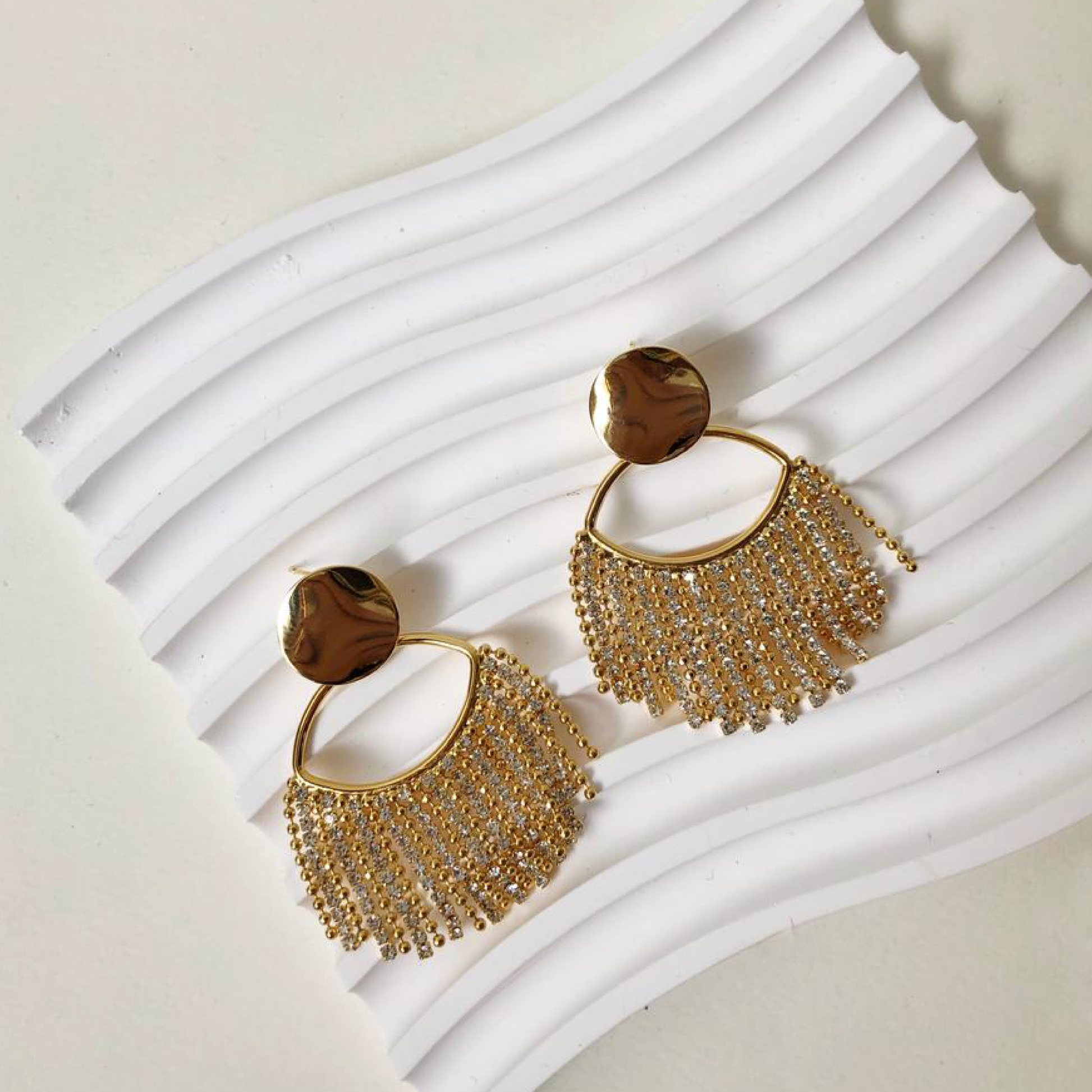 ARETES DORADO, PLATEADO Y VARIACIÓN CON NEGRO, 2 CM APROX, RODIO.