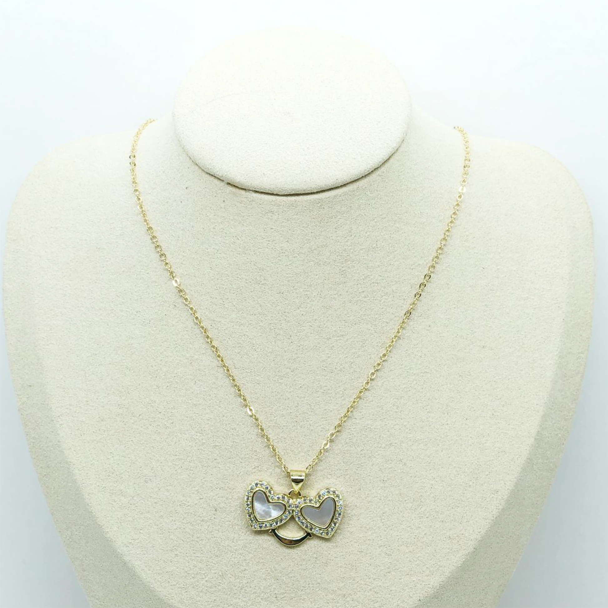 CADENA EN RODIO DE APROX 45CM CON DIJE DOS CORAZONES NACAR.