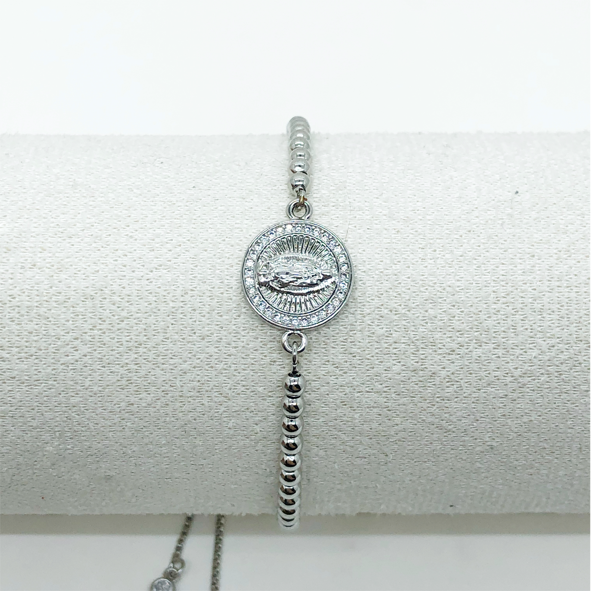 PULSERA PLATEADA MEDALLA VIRGEN DE GUADALUPE, GRADUABLE, RODIO