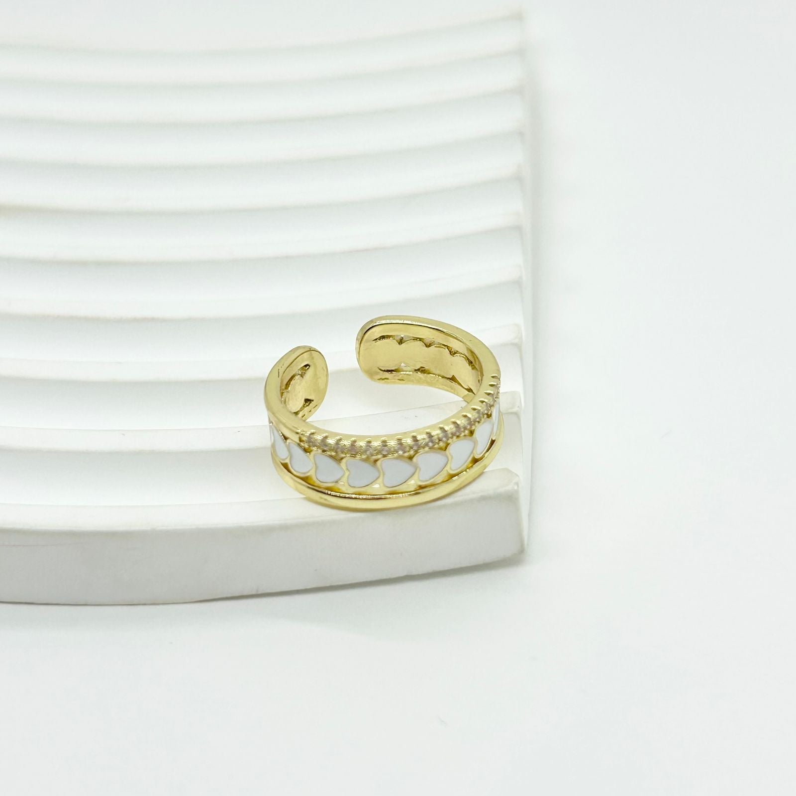 Anillo corazones con baño de rodio que asegura un brillo duradero y mayor resistencia a la corrosión, ideal para un uso diario con estilo refinado y protección contra el desgaste.