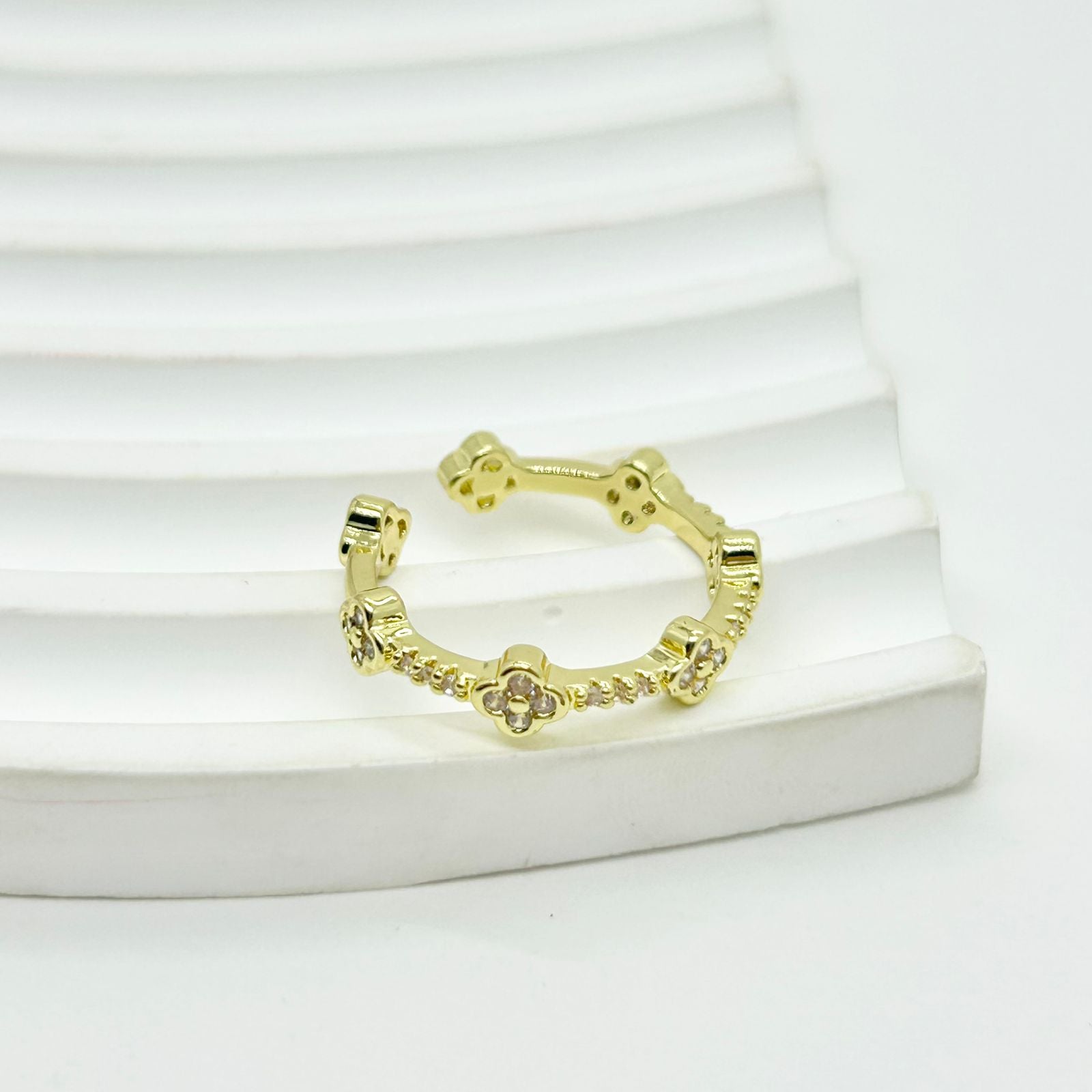 Anillo trébol blanco en baño de rodio que asegura un brillo duradero y mayor resistencia a la corrosión, ideal para un uso diario con estilo refinado y protección contra el desgaste.