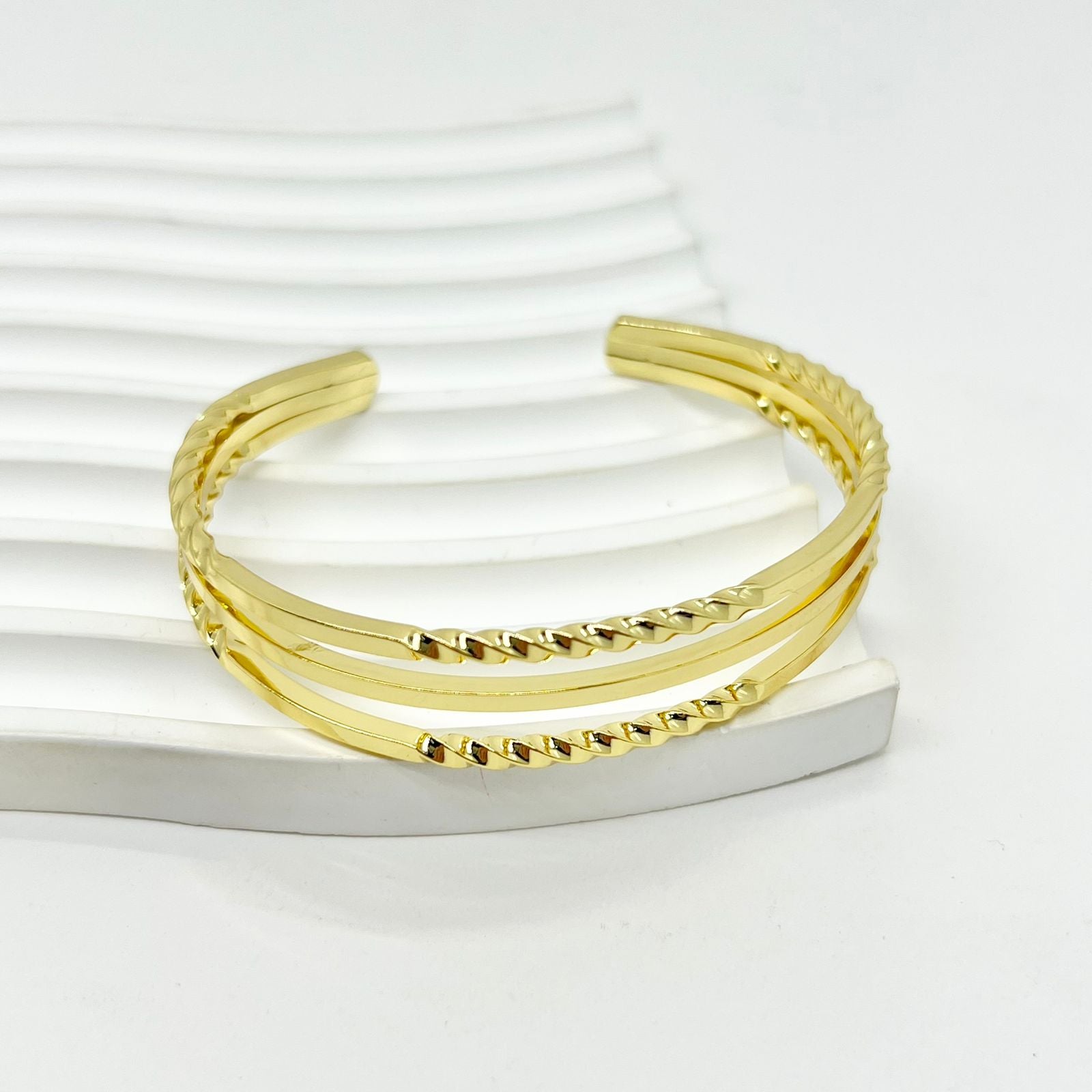 Brazalete tres líneas con dos talladas en baño de rodio.