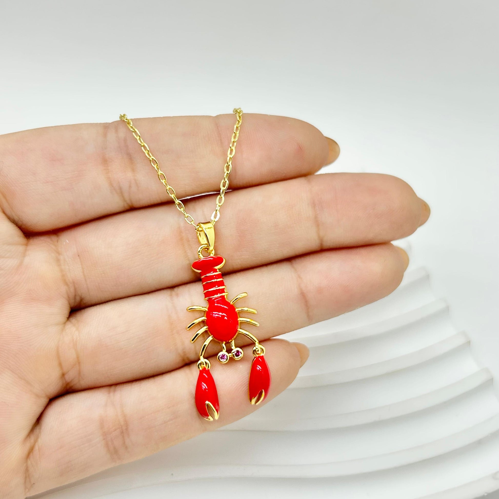 Cadena con dije en forma de langosta, con baño de rodio para mayor durabilidad y brillo. Perfecta para un estilo refinado y resistente.