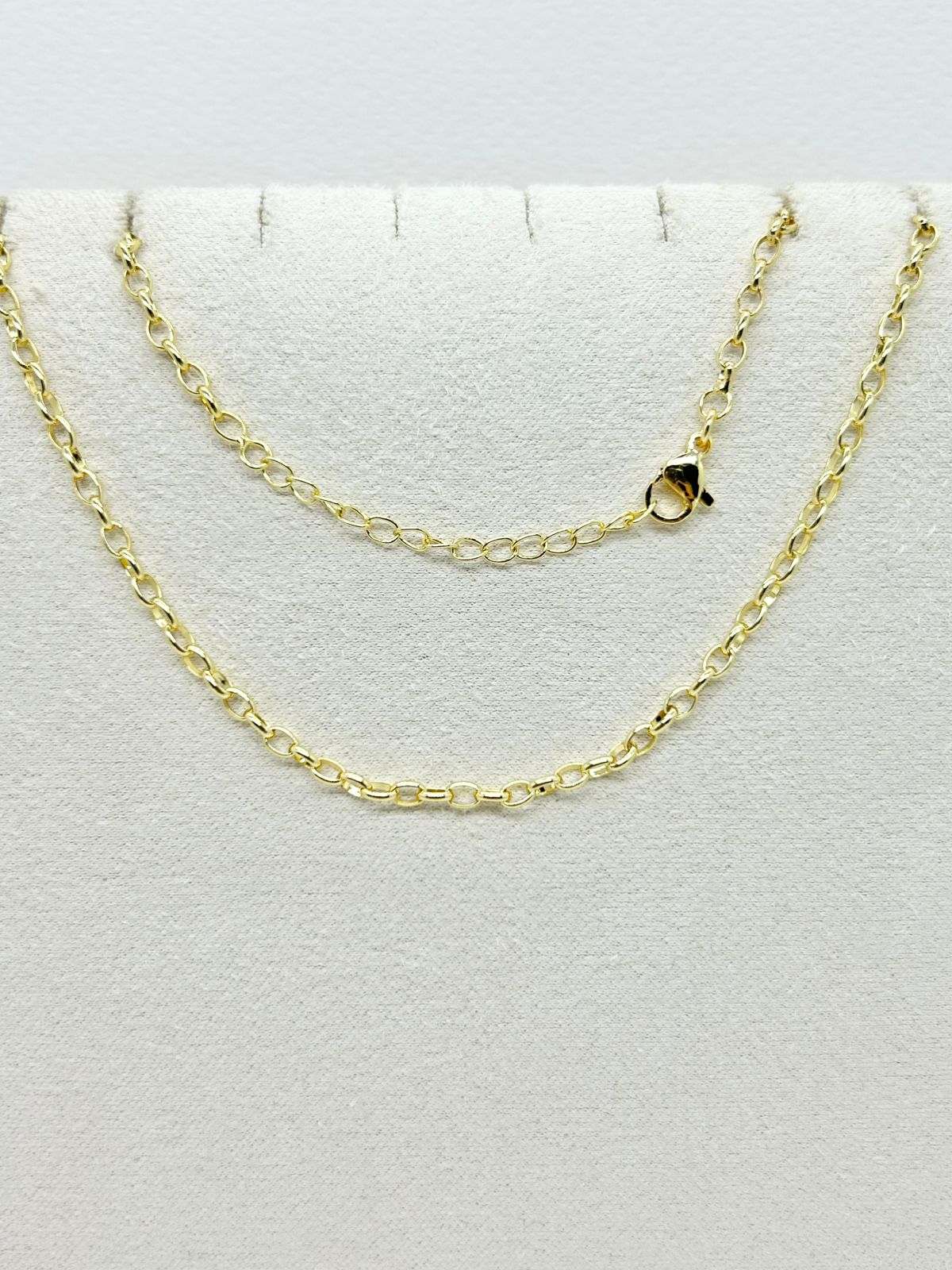 La cadena eslabón seguido con baño de rodio combina delicadeza y durabilidad. Su acabado en rodio ofrece un brillo resistente y protección contra el desgaste, ideal para complementar cualquier look con un toque sofisticado y discreto.
