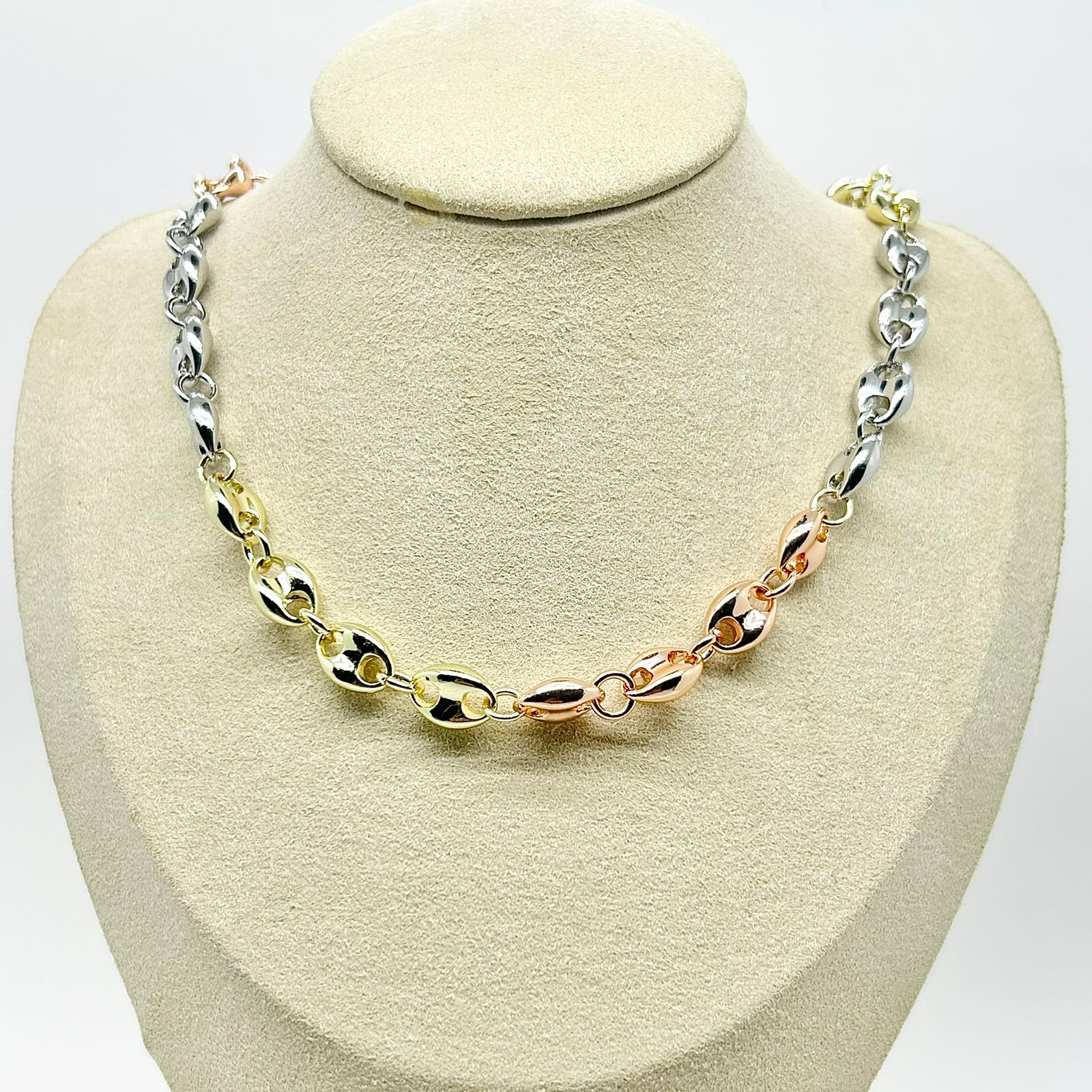 Cadena tres oros grande en baño de rodio de aprox 45cm