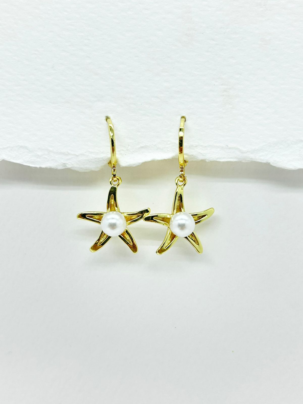 Candonga con silueta estrella y perla en baño de rodio.