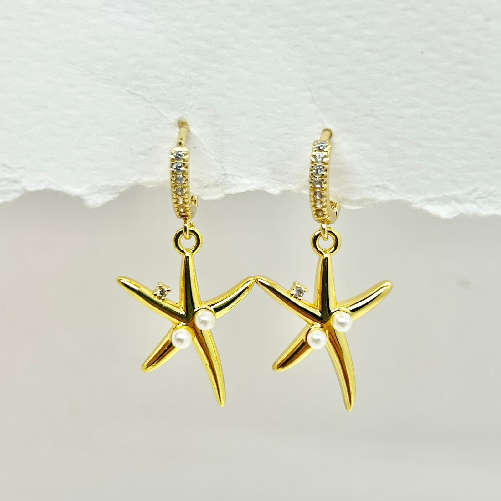 Candonga diseño estrella de mar con baño de rodio, que ofrece un acabado brillante y duradero. Perfecta para añadir un toque sofisticado y elegante a cualquier look.