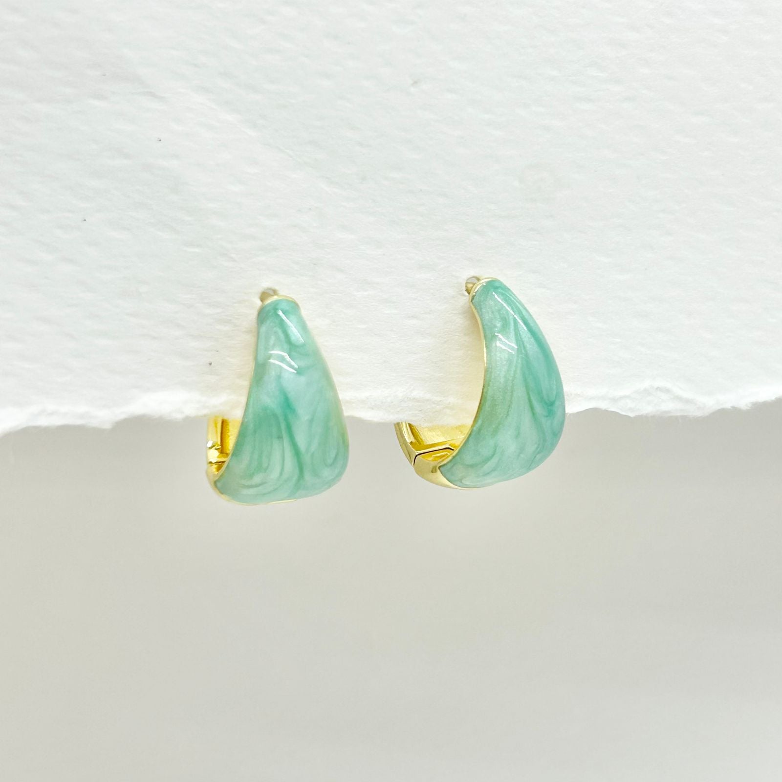 Las candongas verde menta con baño de rodio combinan delicadeza y durabilidad, ofreciendo un brillo intenso y protección contra el desgaste. Ideales para realzar cualquier atuendo con un toque moderno y sofisticado.
