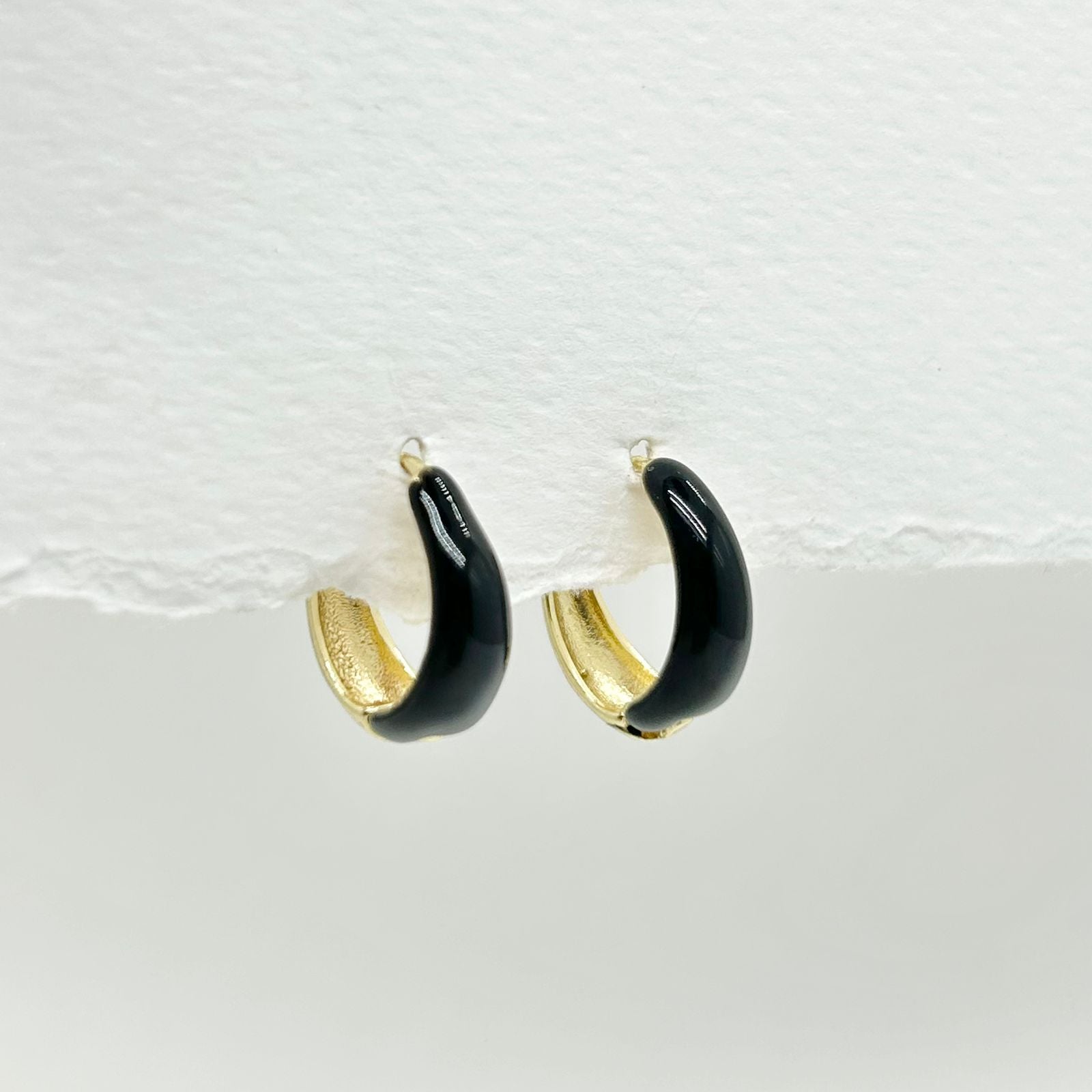Las candongas negras con baño de rodio combinan delicadeza y durabilidad, ofreciendo un brillo intenso y protección contra el desgaste. Ideales para realzar cualquier atuendo con un toque moderno y sofisticado.