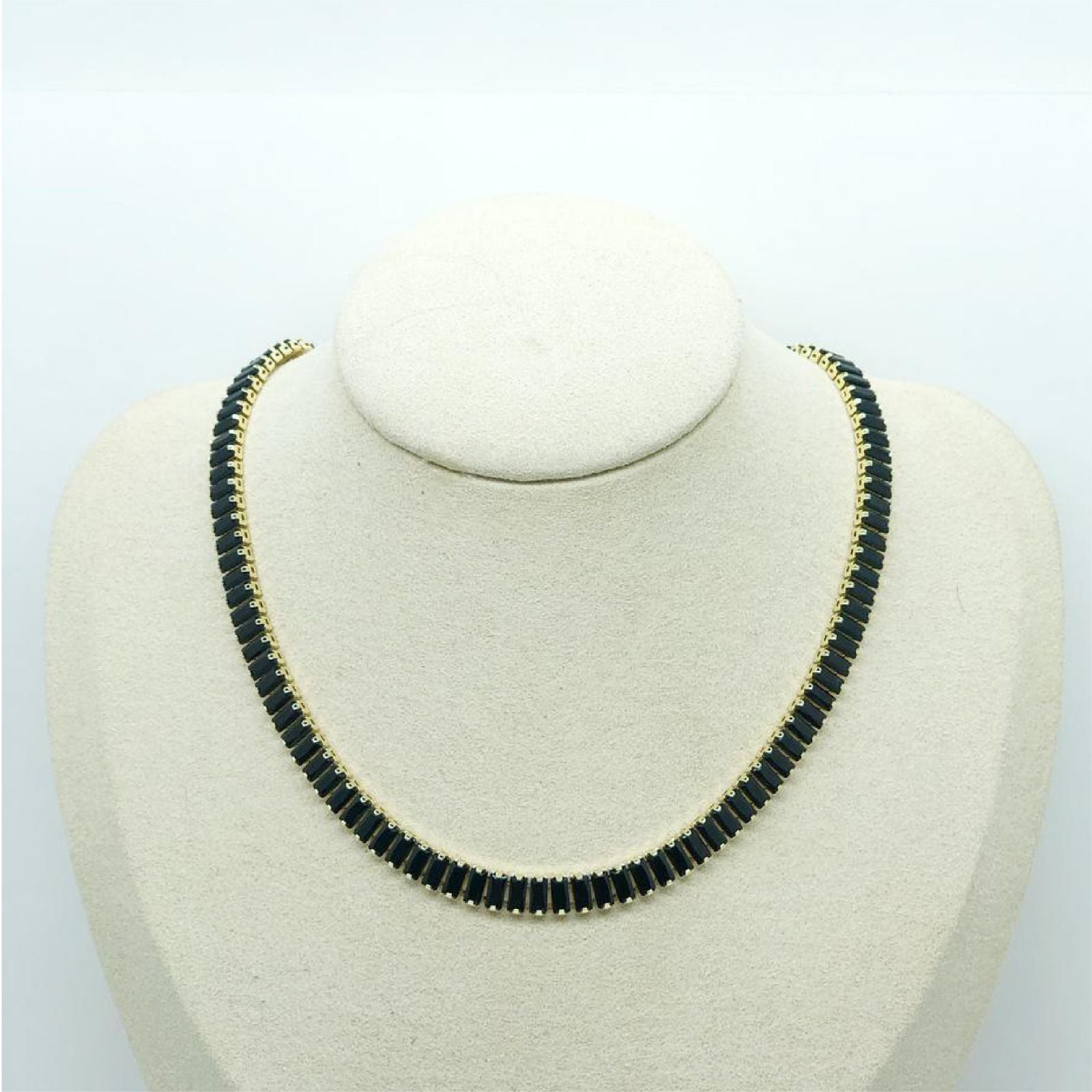 Collar elaborado con circones negros de alta calidad, montados sobre un baño de rodio que brinda resistencia y un brillo duradero. Una pieza sofisticada que aporta elegancia y brillo sutil a cualquier estilo.