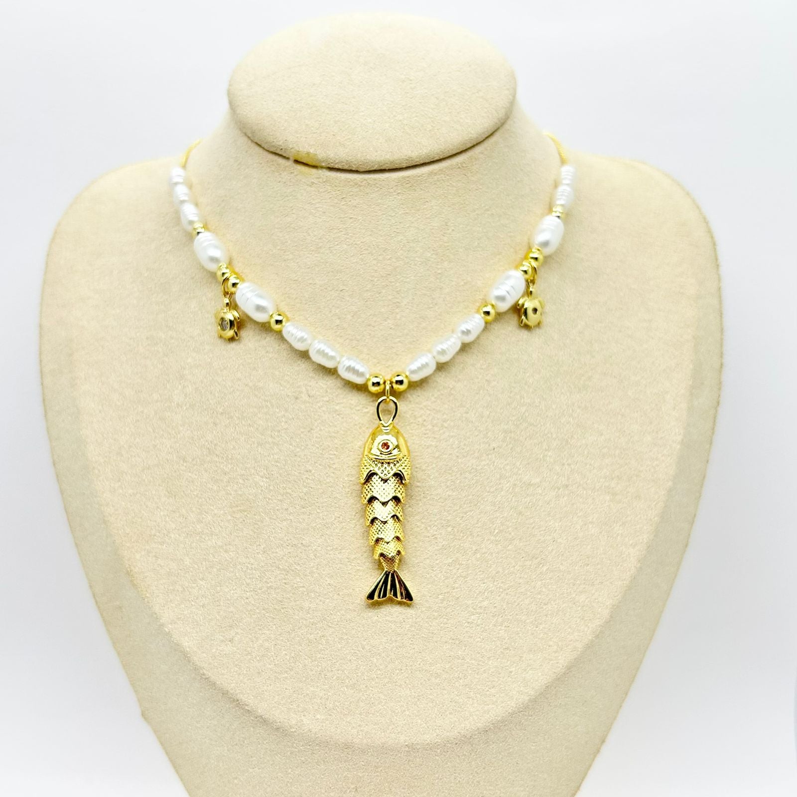 Este collar Mar combina elegancia y sofisticación, con una perla central y delicados dijes bañados en rodio que aseguran durabilidad y brillo. Ideal para realzar cualquier atuendo con un toque refinado y moderno.