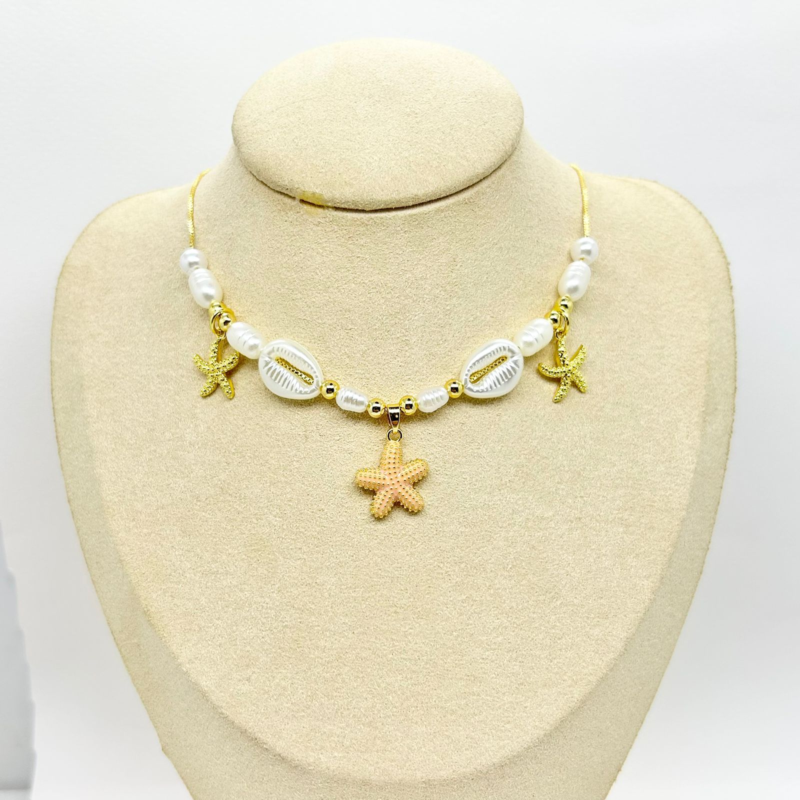Este collar Mar combina elegancia y sofisticación, con una perla central y delicados dijes bañados en rodio que aseguran durabilidad y brillo. Ideal para realzar cualquier atuendo con un toque refinado y moderno.