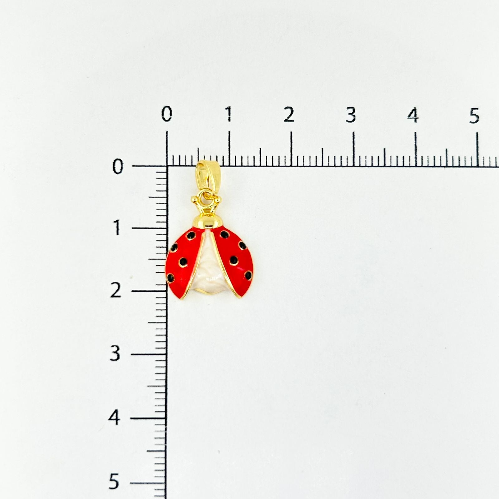 Este dije de mariquita rojo, acabado en baño de rodio, combina detalle y resistencia para un accesorio elegante y duradero. Perfecto para destacar con un toque de color y sofisticación.