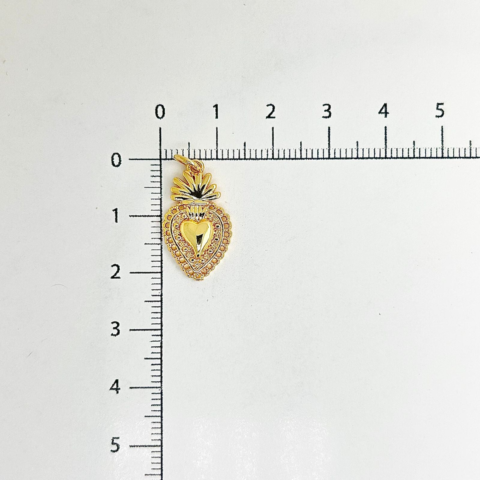 Dije corazón religioso en baño de rodio.