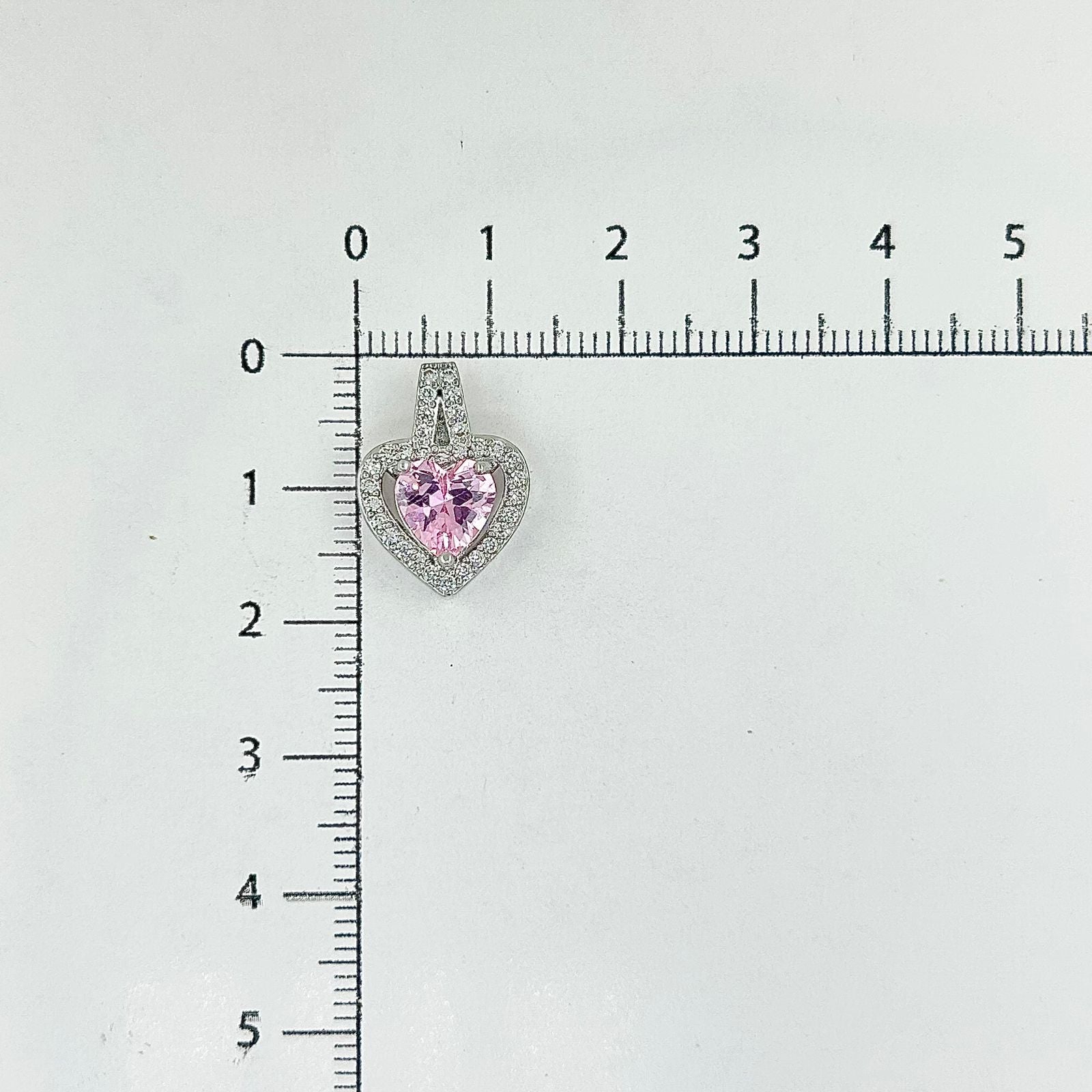 Dije corazón con micro circones blancos y rosado en baño de rodio