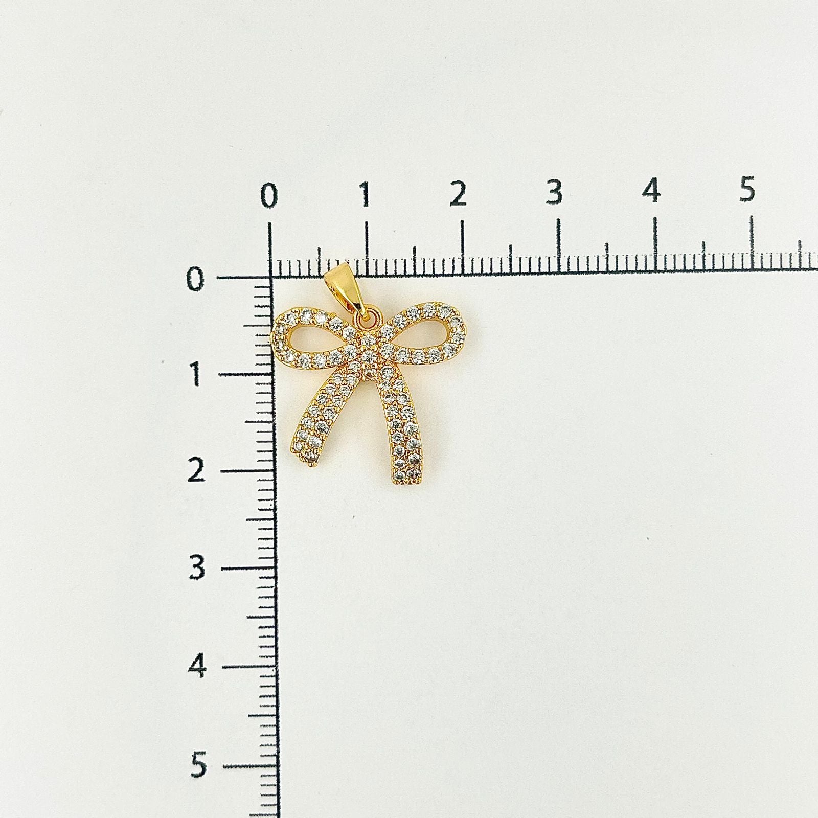 Dije en baño de rodio en forma de moño con circones
