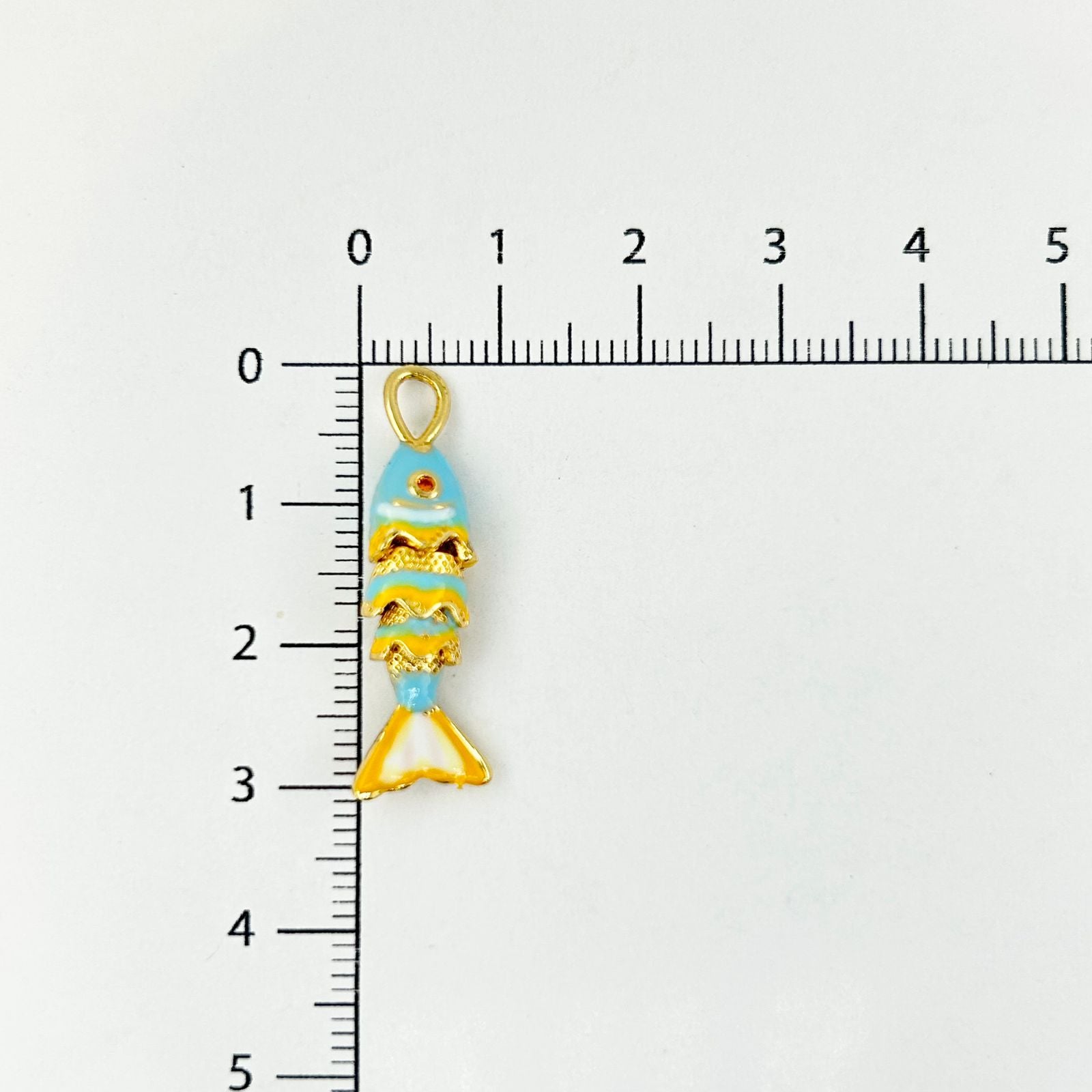 Este dije en forma de pescado con acabado en rodio ofrece un diseño elegante y resistencia al desgaste, ideal para accesorios duraderos y sofisticados.