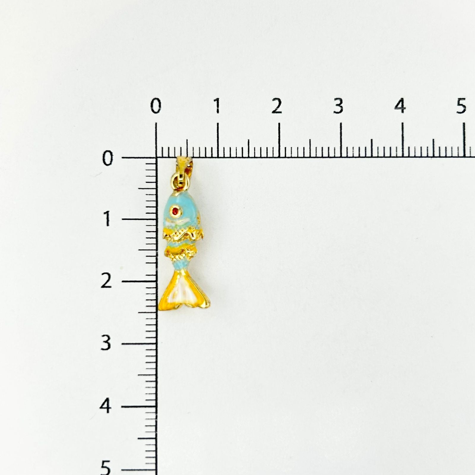 Este dije en forma de pescado con acabado en rodio ofrece un diseño elegante y resistencia al desgaste, ideal para accesorios duraderos y sofisticados.