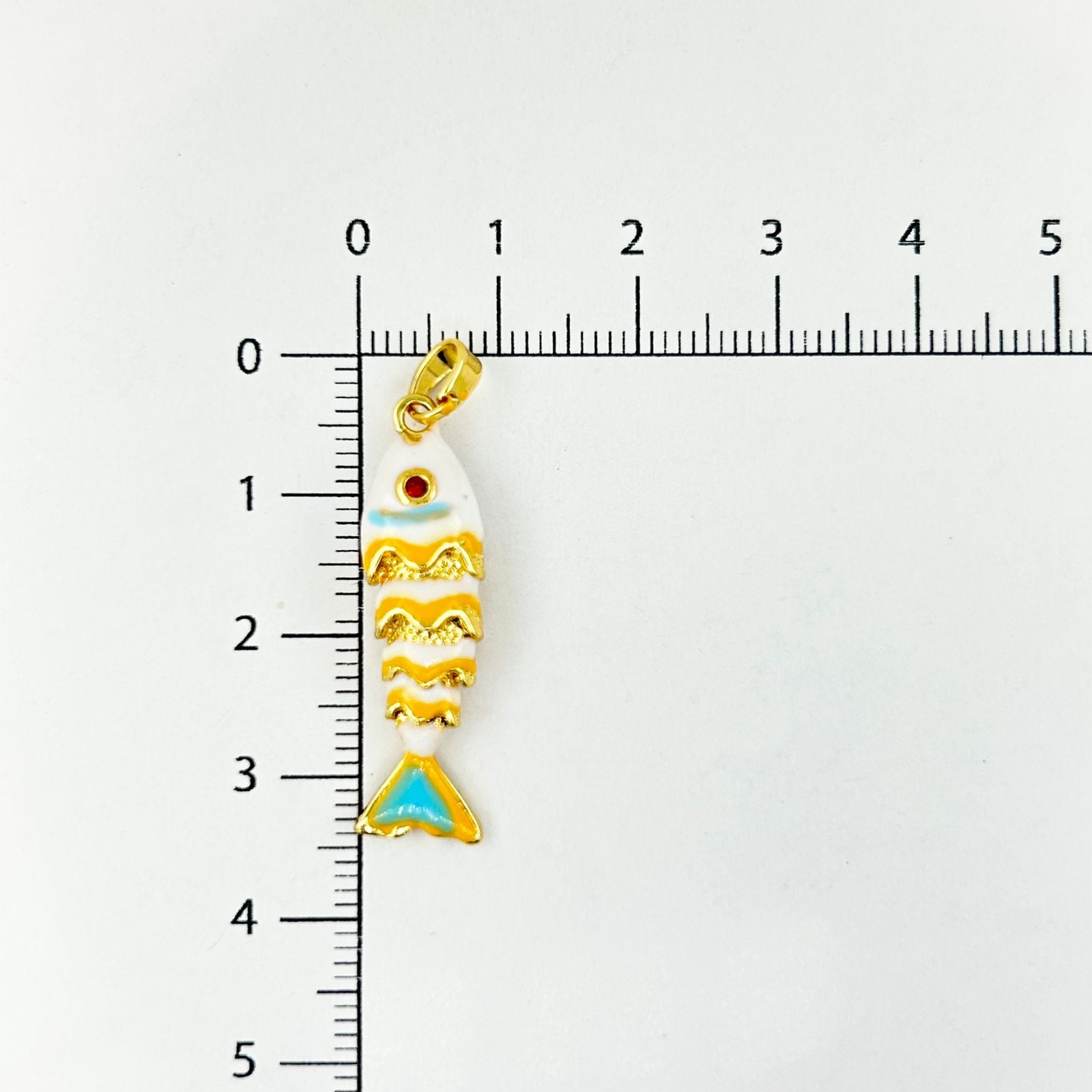 Este dije en forma de pescado con acabado en rodio ofrece un diseño elegante y resistencia al desgaste, ideal para accesorios duraderos y sofisticados.