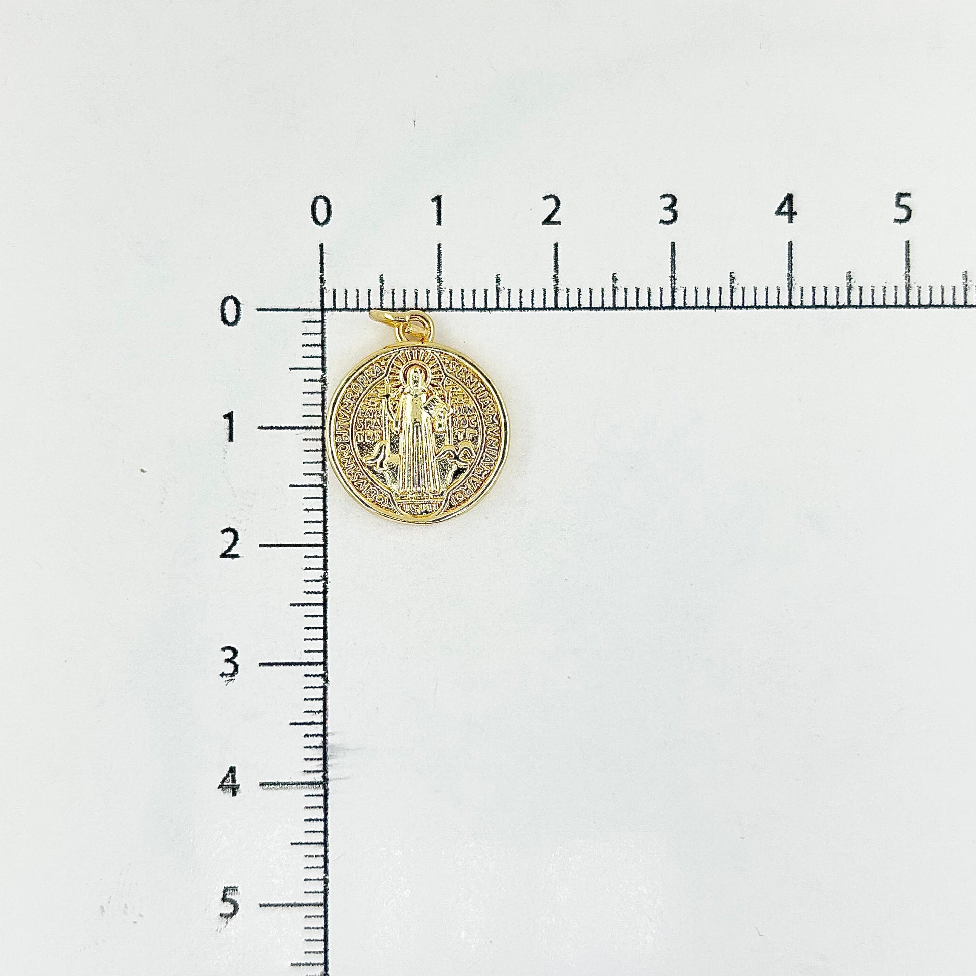 Dije en forma san Benito en baño de rodio.