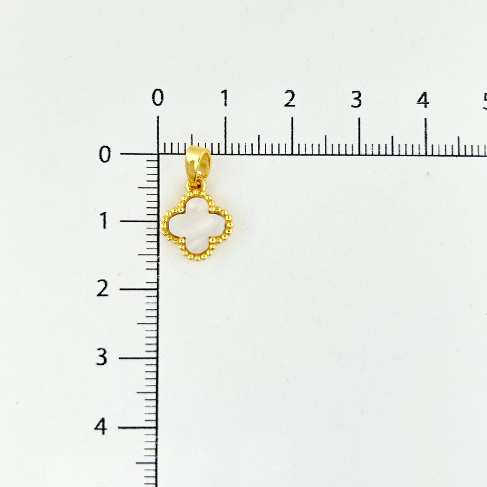 Dije trébol pequeño en baño de rodio, combina elegancia y resistencia. Su acabado blanco brillante garantiza durabilidad y un estilo delicado, ideal para complementar cualquier look con sofisticación discreta.