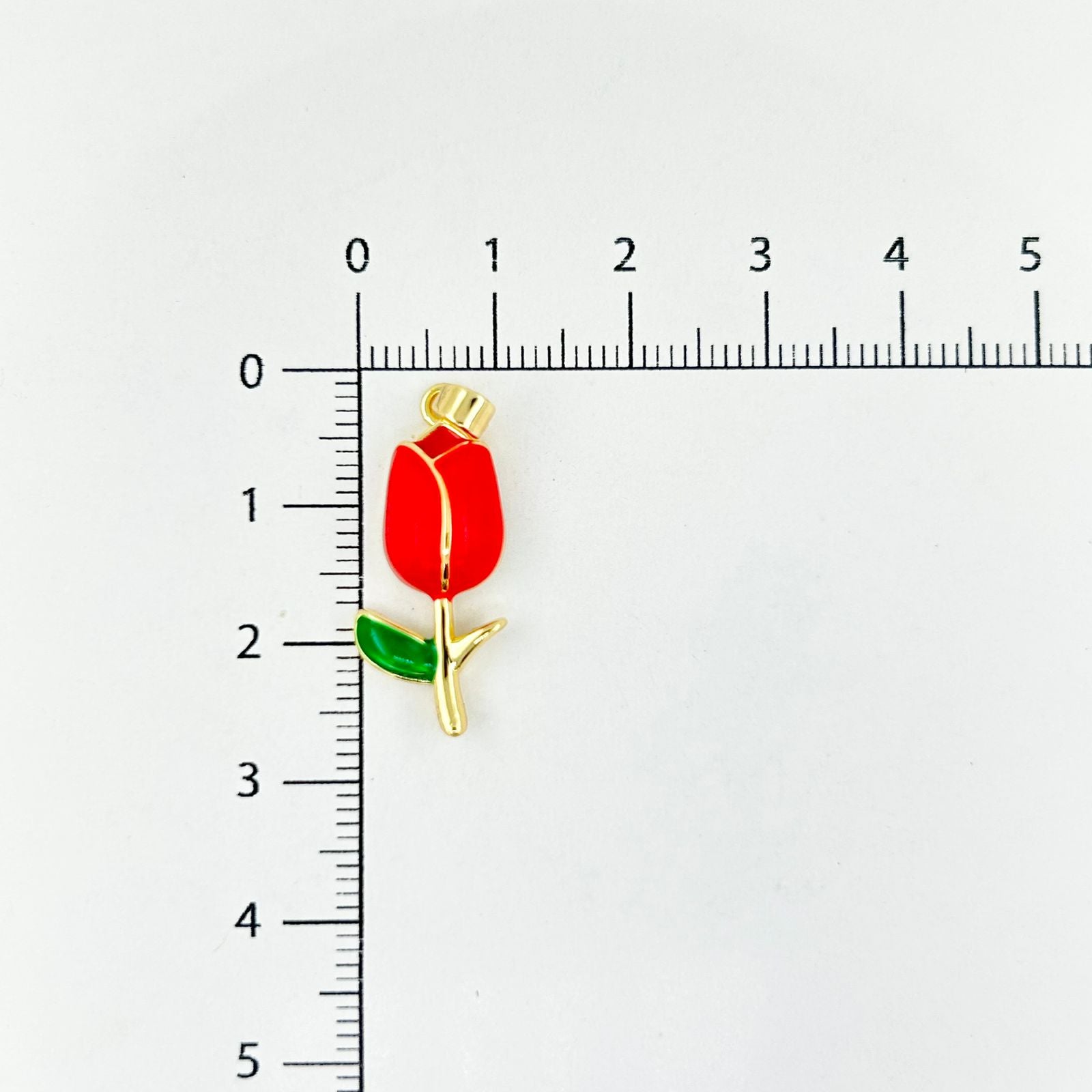 Dije de tulipán rosado con baño de rodio, que combina un diseño elegante con resistencia al desgaste y un acabado brillante, ideal para añadir un toque sofisticado a cualquier conjunto.