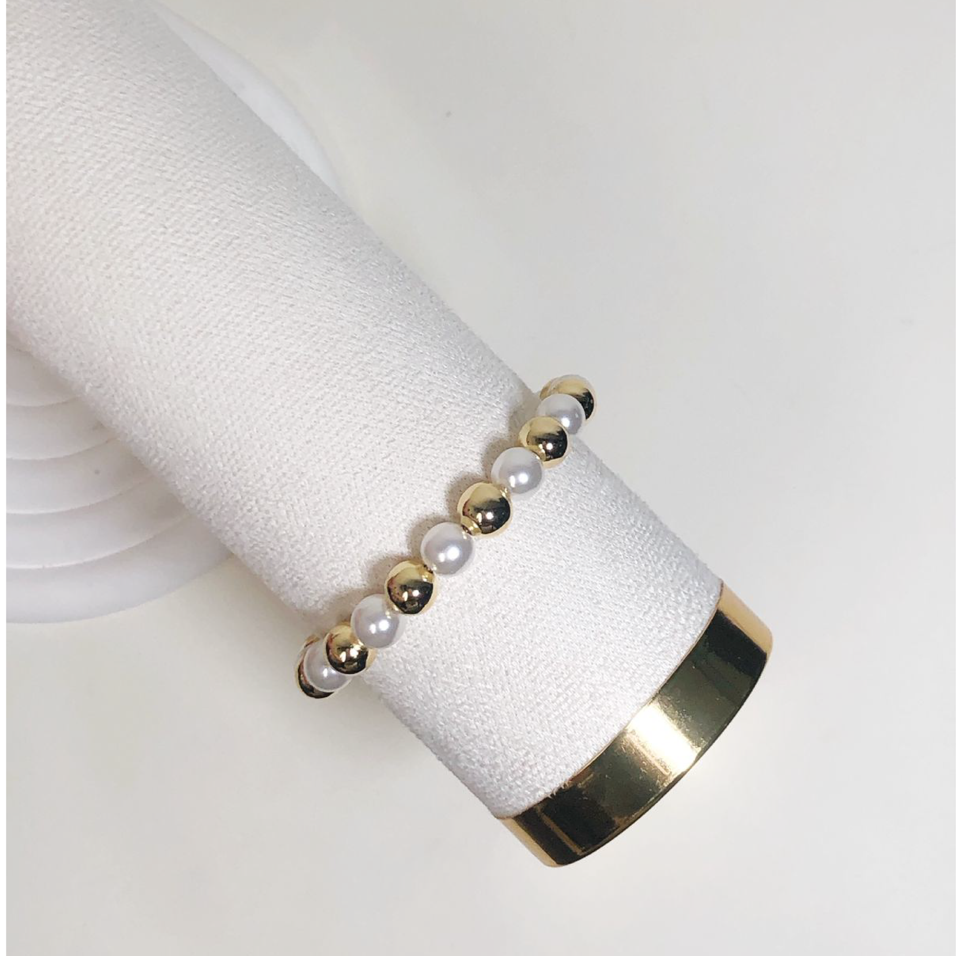 PULSERA DORADA Y BLANCA PERLA, RODIO, 15 CM APROX
