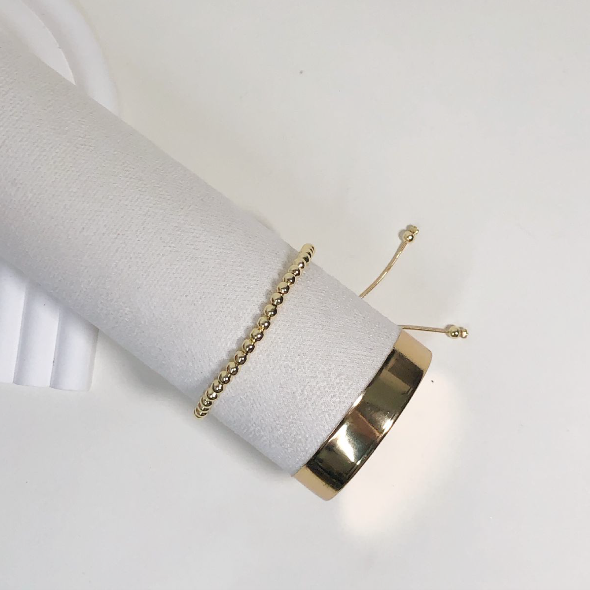 PULSERA BALINES DORADOS, 15 CM APROX, RODIO