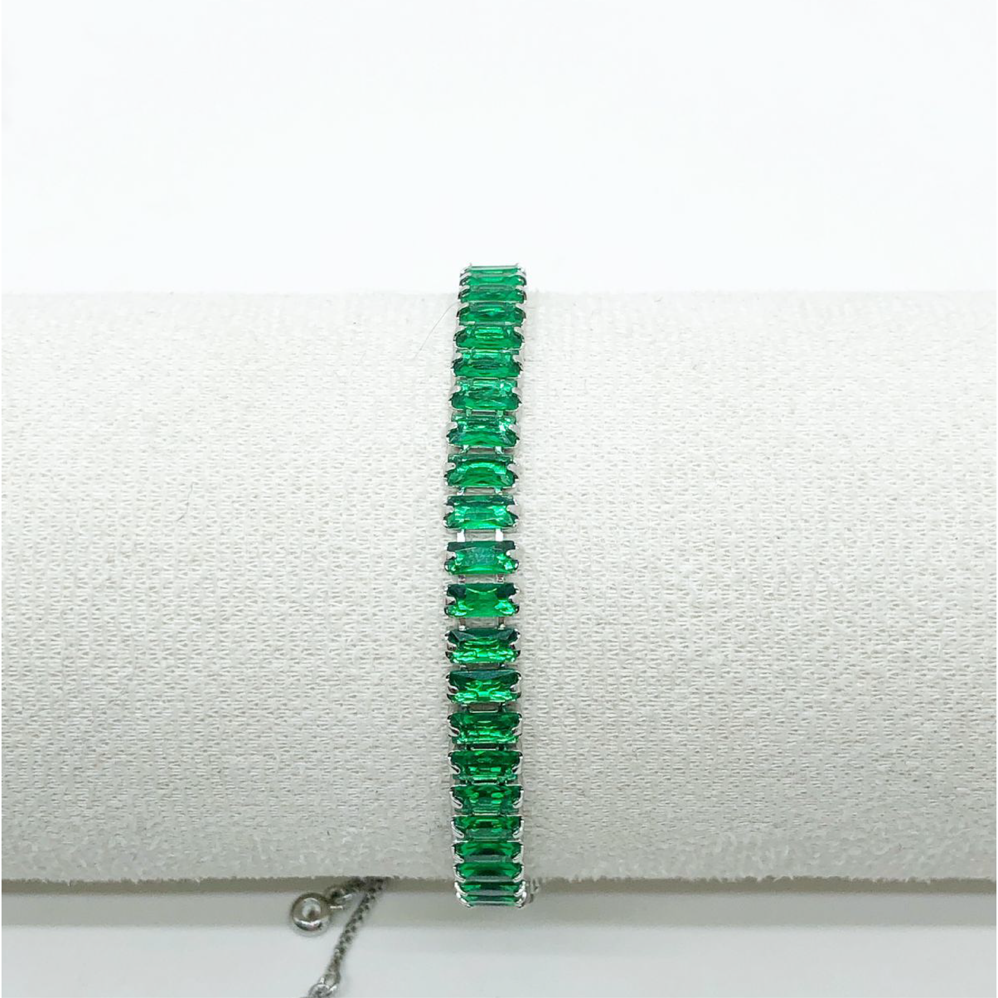 PULSERA PLATEADO CON CIRCONES VERDES.