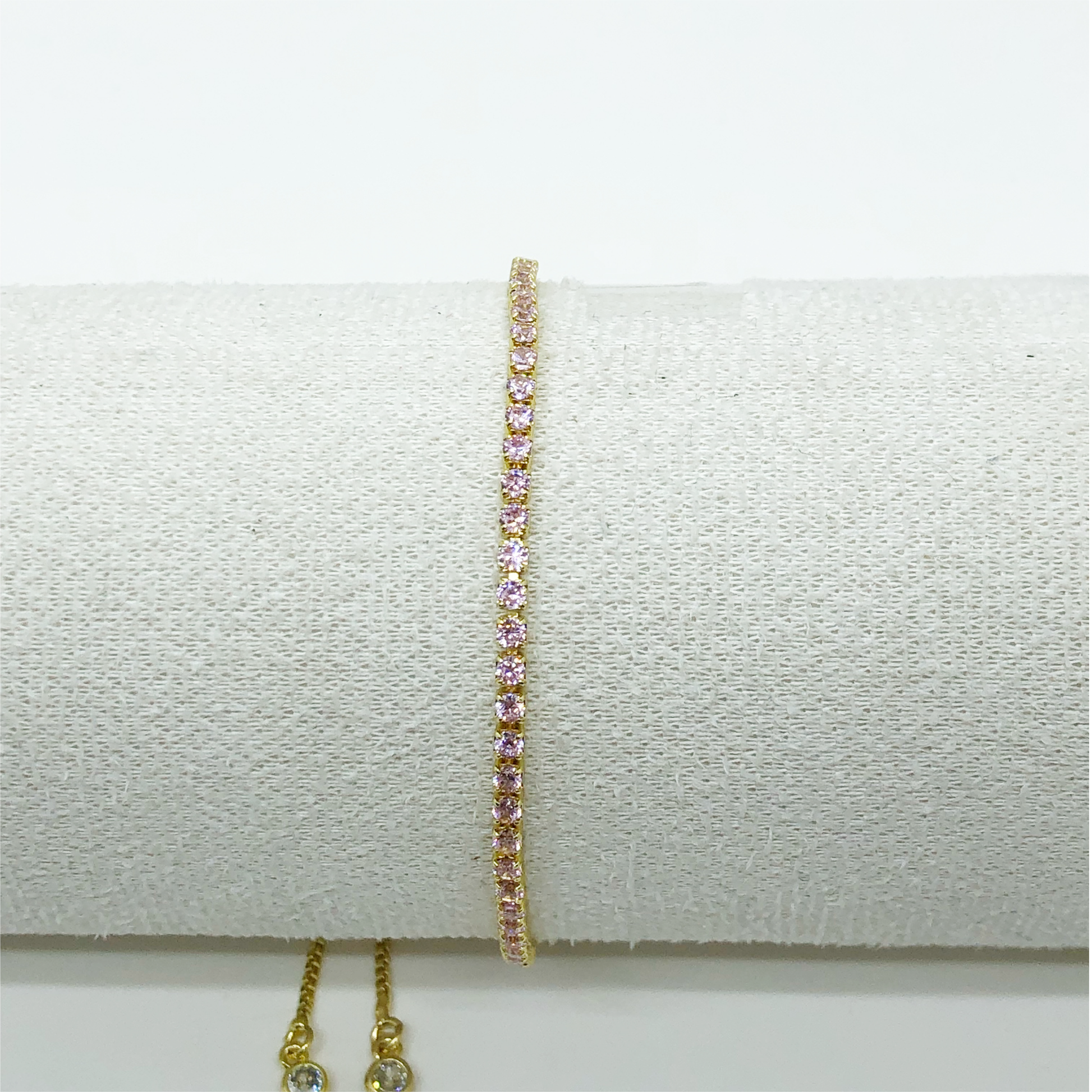 PULSERA DORADA CON CIRCONES MORADOS, GRADUABLE, RODIO