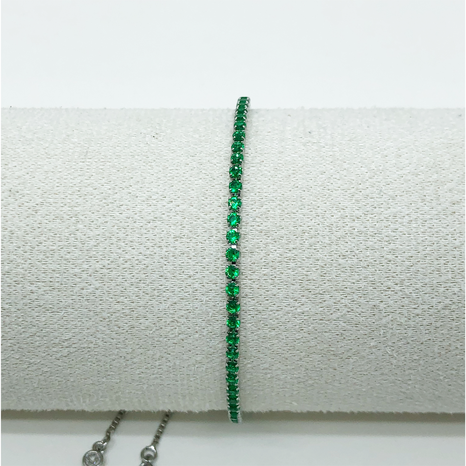 PULSERA PLATEADA CON CIRCONES VERDES, GRADUABLE, RODIO