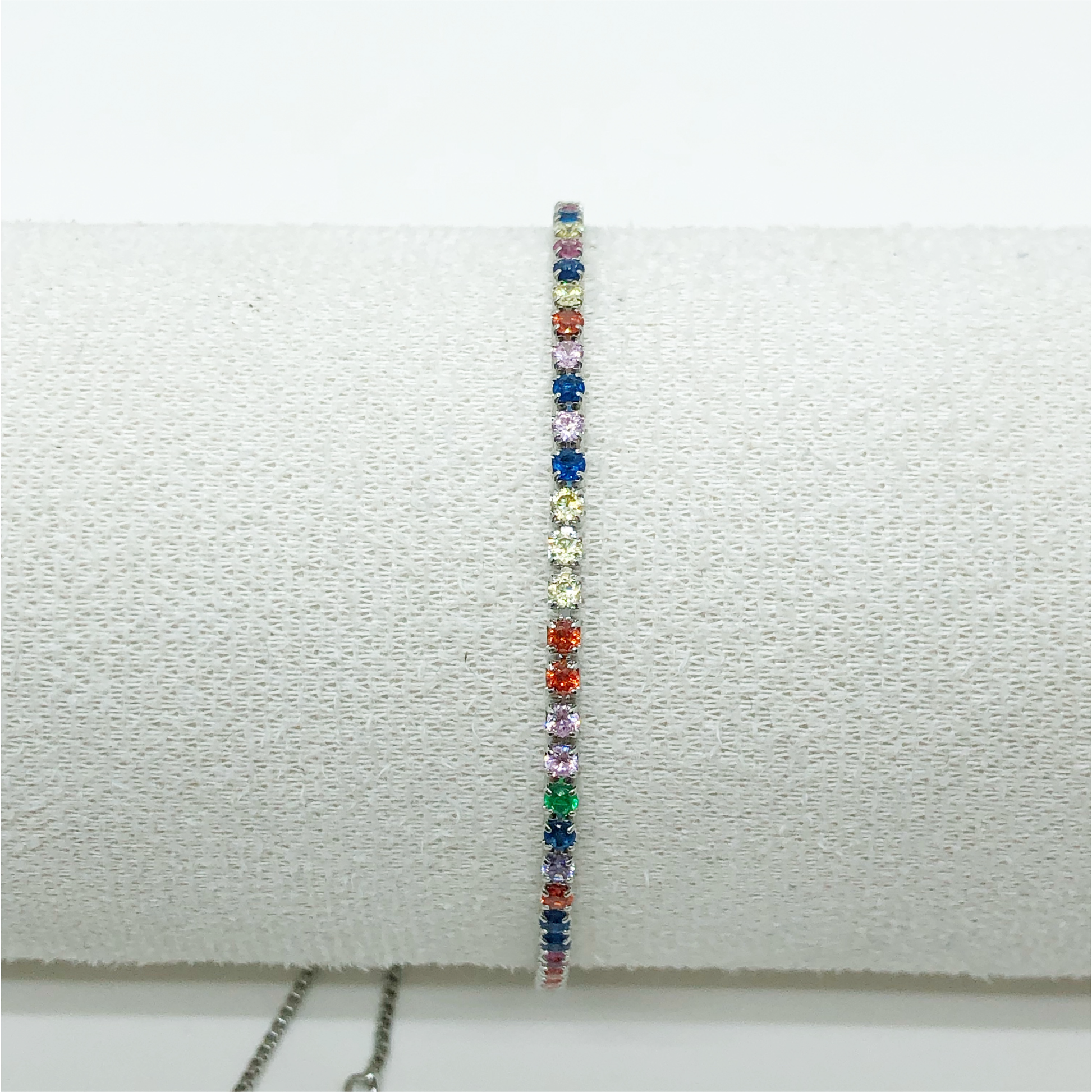 PULSERA PLATEADA MULTICOLOR, GRADUABLE, RODIO