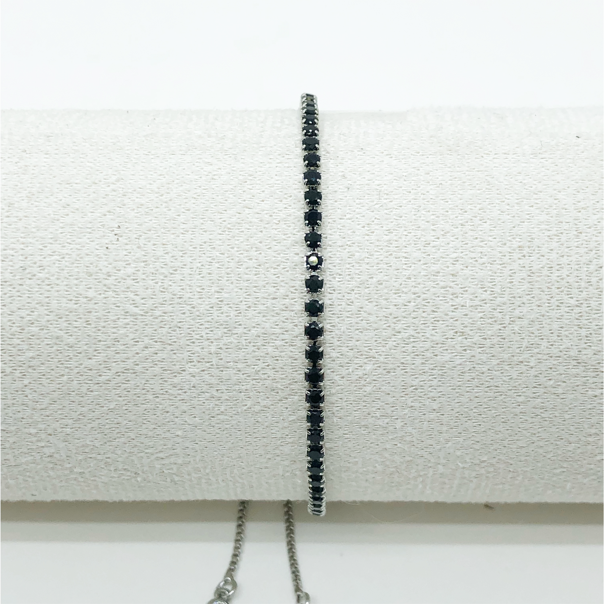 PULSERA PLATEADA CON CIRCONES NEGROS, GRADUABLE, RODIO