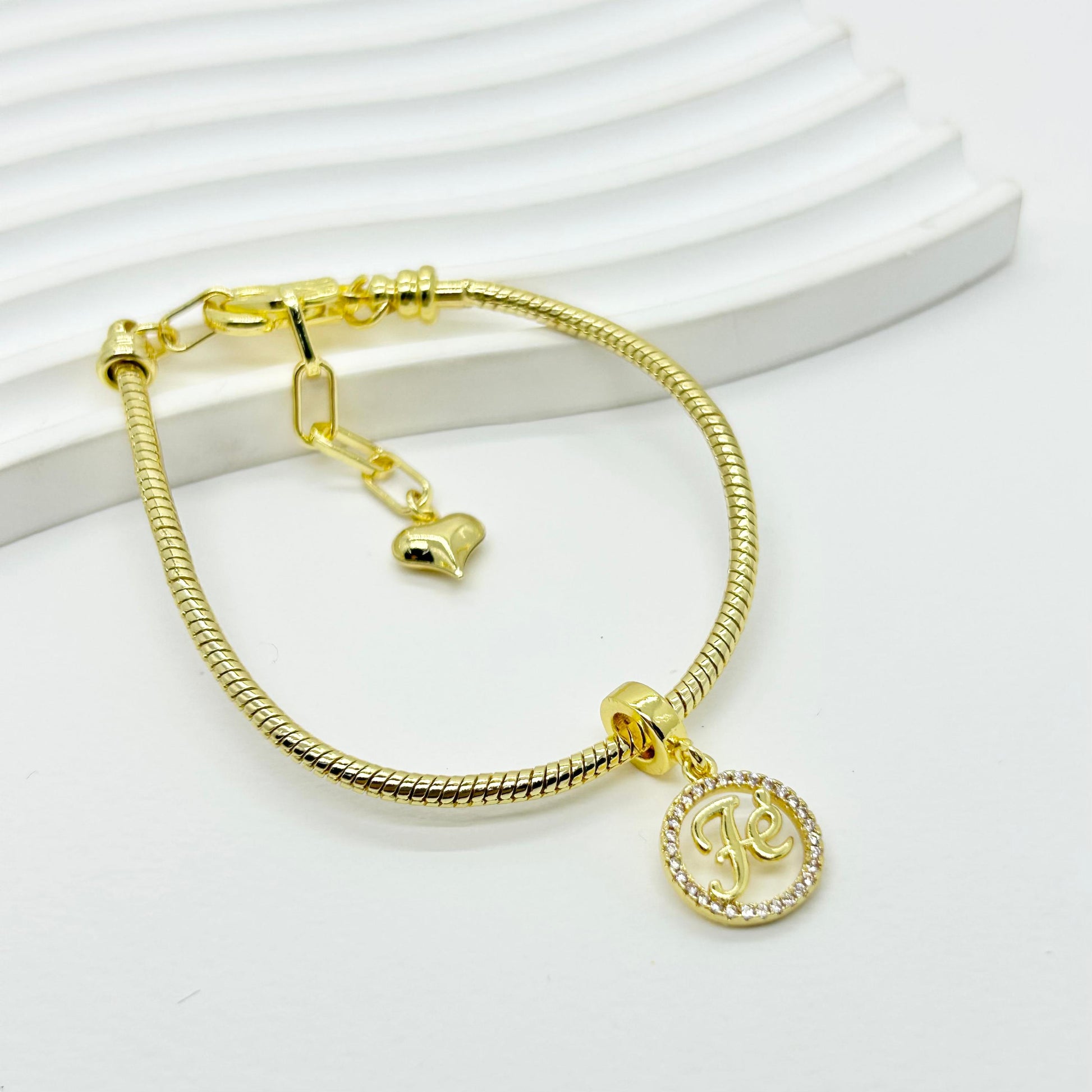 Pulsera en rodio con diseño de dije FE de que combina durabilidad y estilo sofisticado en una pieza corta ideal para uso diario y ocasiones especiales.