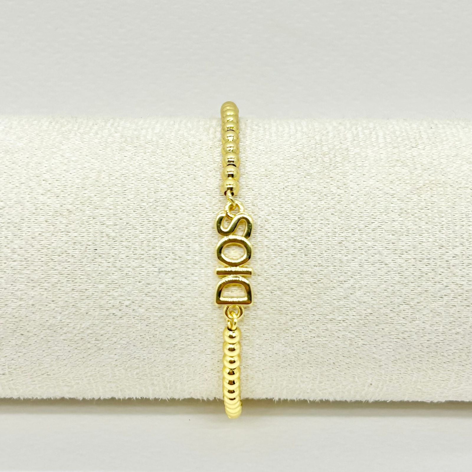 Pulsera en rodio con diseño de dije Dios que combina durabilidad y estilo sofisticado en una pieza corta ideal para uso diario y ocasiones especiales.