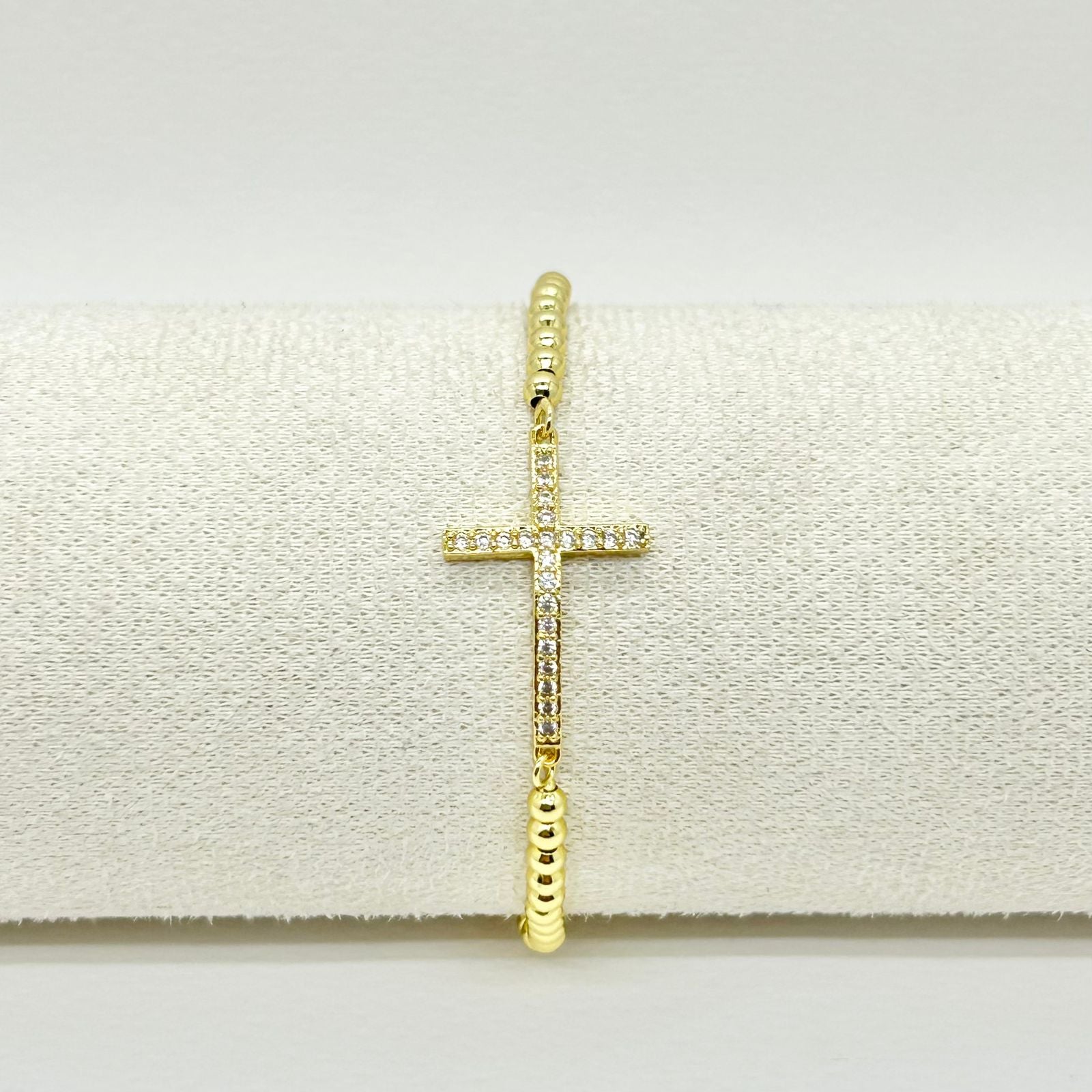 Pulsera en rodio con diseño de dije cruz de que combina durabilidad y estilo sofisticado en una pieza corta ideal para uso diario y ocasiones especiales.