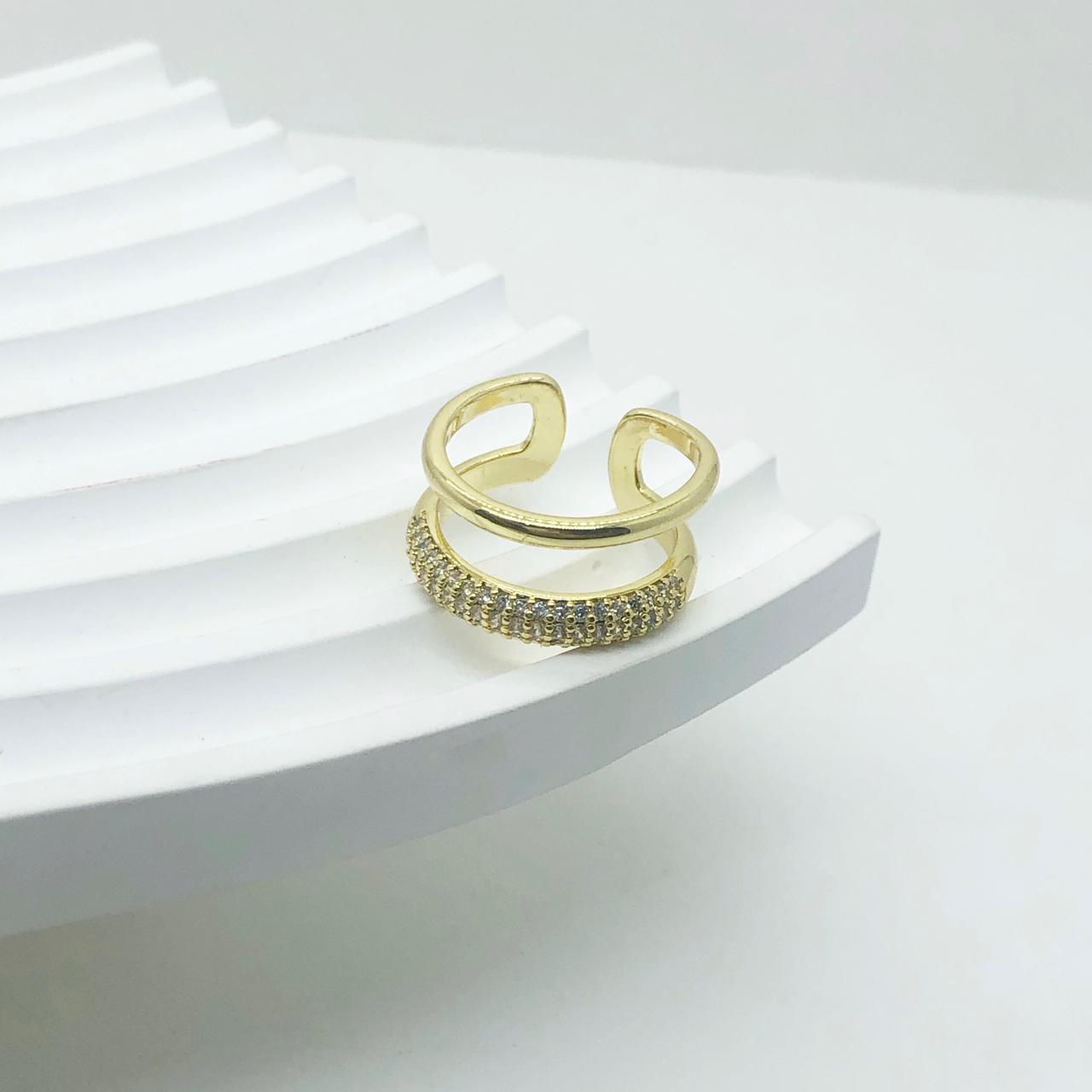 ANILLO DOBLE LINEA CON CIRCON GRADUABLE,RODIO.