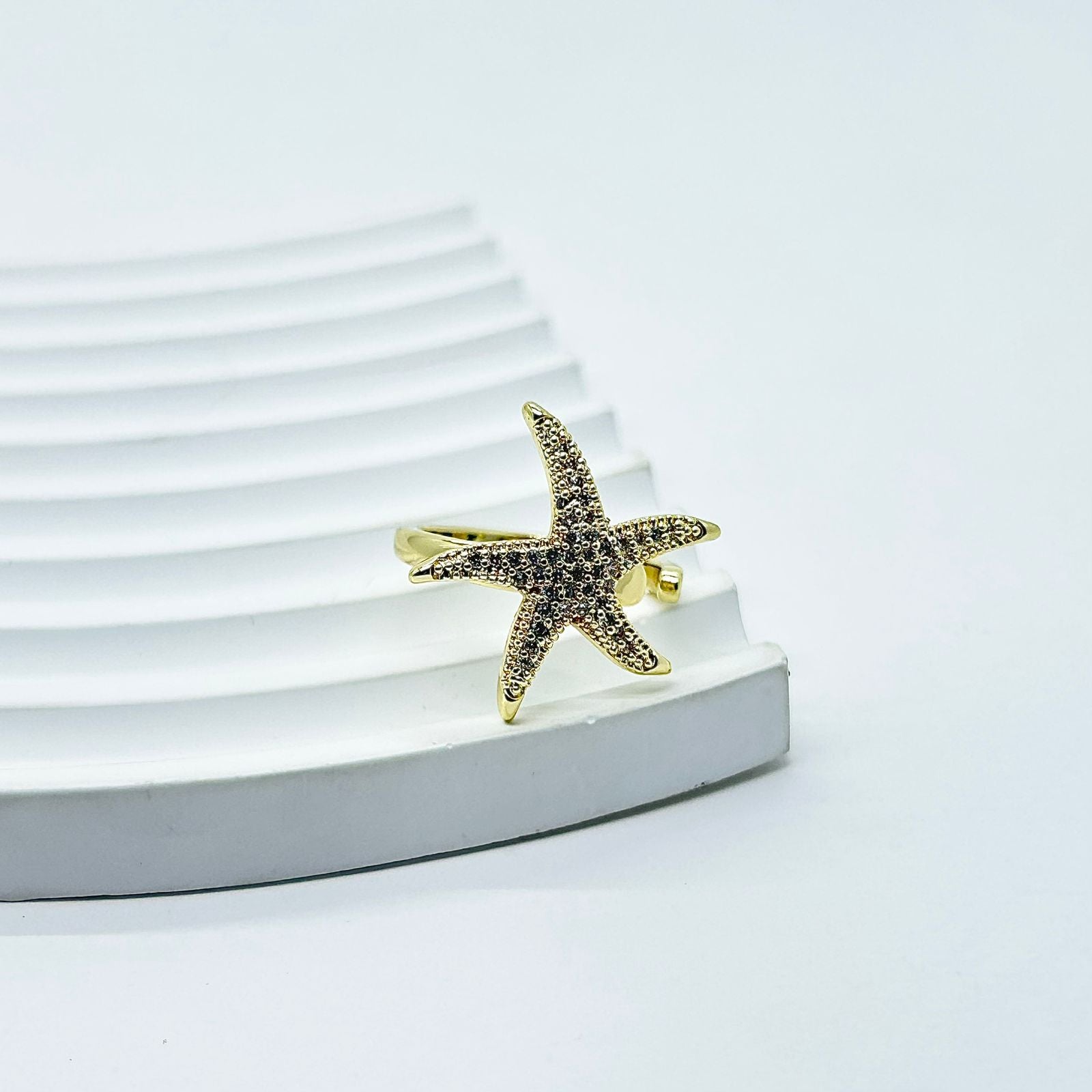 Anillo bañado en rodio de estrella con circones.