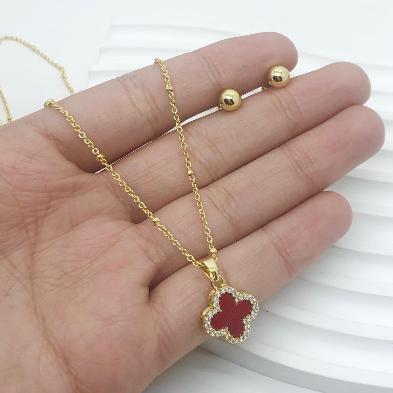 SETX2 DE CADENA CON DIJE TREBOL Y TOPO BALIN EN RODIO.