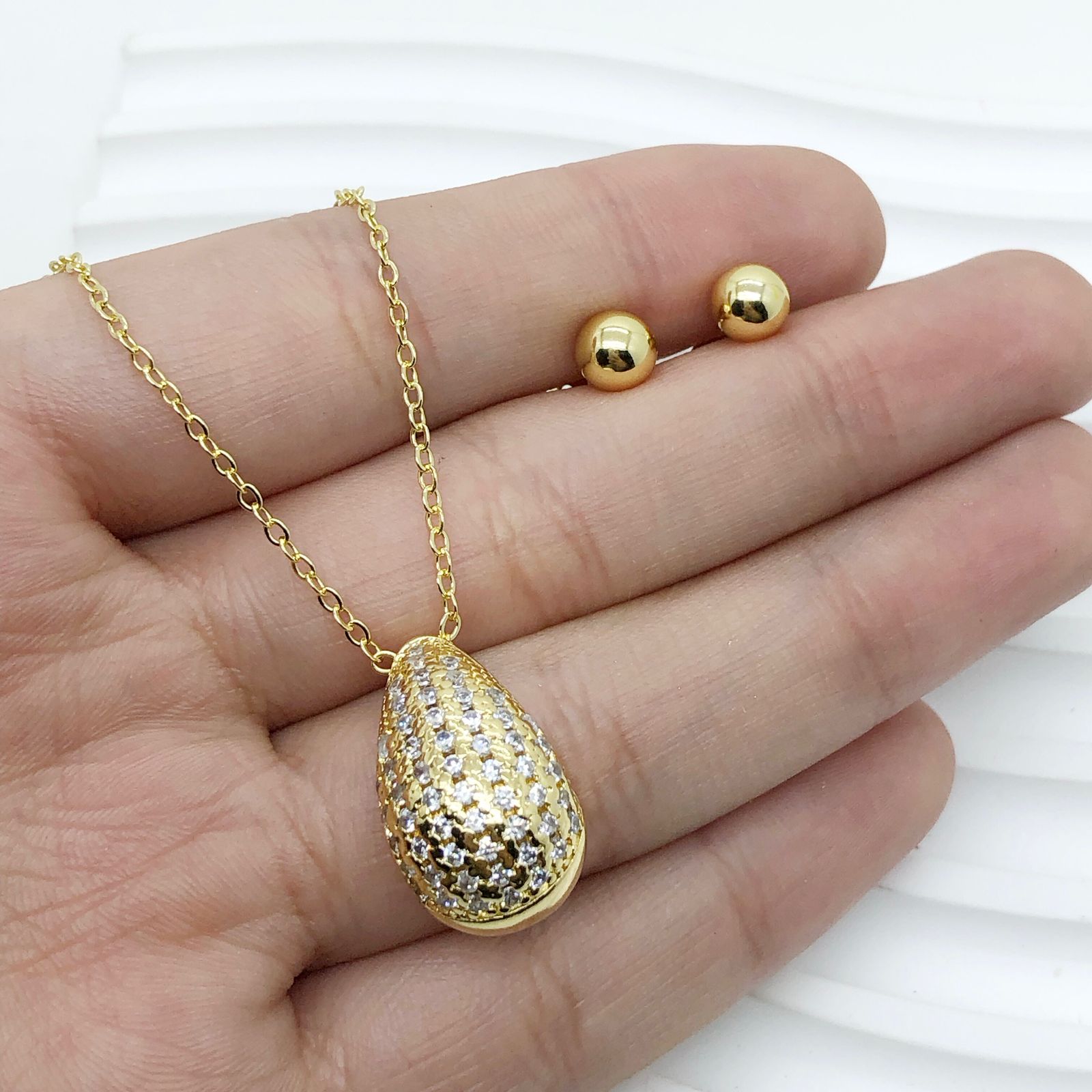 SETX2 DE CADENA CON DIJE GOTA Y TOPO BALIN EN RODIO.