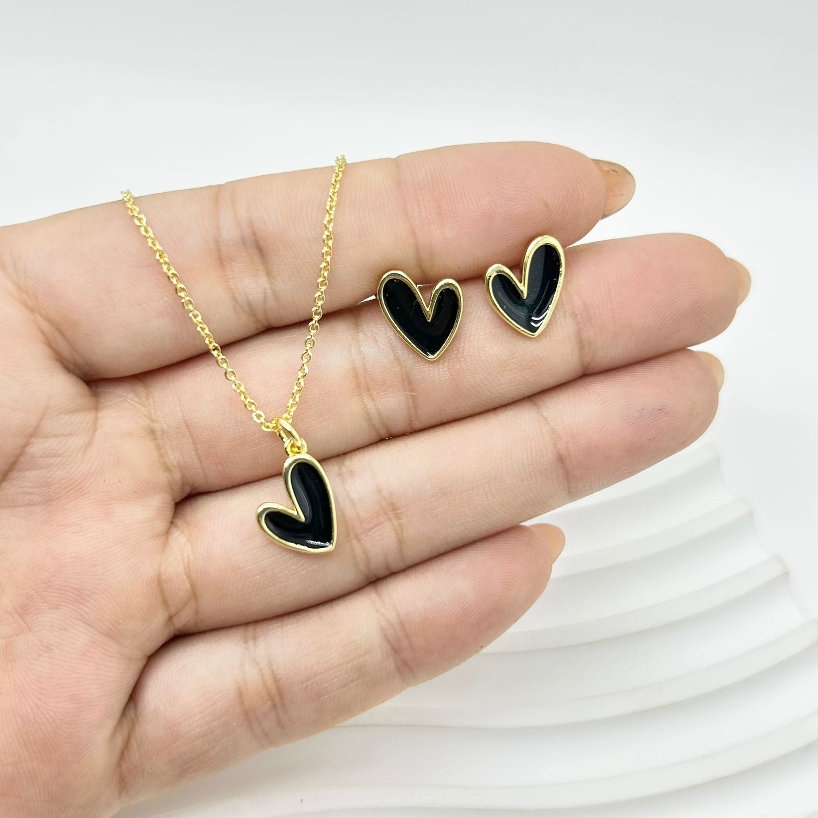 Set de corazón negro en rodio que destaca por su diseño elegante y duradero. Su acabado en rodio garantiza brillo y resistencia, ideal para realzar cualquier estilo con un toque sofisticado y romántico.